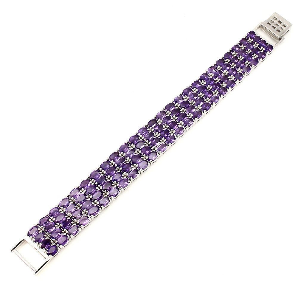 BRACELET.....TYPE OF METAL925 STERLING SILVER;PLATE14K WHITE GOLD;LENGTH (INCHES)7;MAIN STONEAMETHYST;TOTAL WEIGHT296.64 CT (TOTAL WEIGHT OF SILVER + STONE)DIMENSION* STONE 6.0 X 4.0 MM. * FACE BRACELET 163.0 X 17.0 MM.;MAIN STONE SHAPEOVAL CUT;MAIN STONE COLORTOP RICH PURPLE;CLARITY/GRADEIF TO VVS;LUSTERGLORIOUS;TREATMENTUNHEATED;ORIGINBRAZIL;HARDNESS7.0