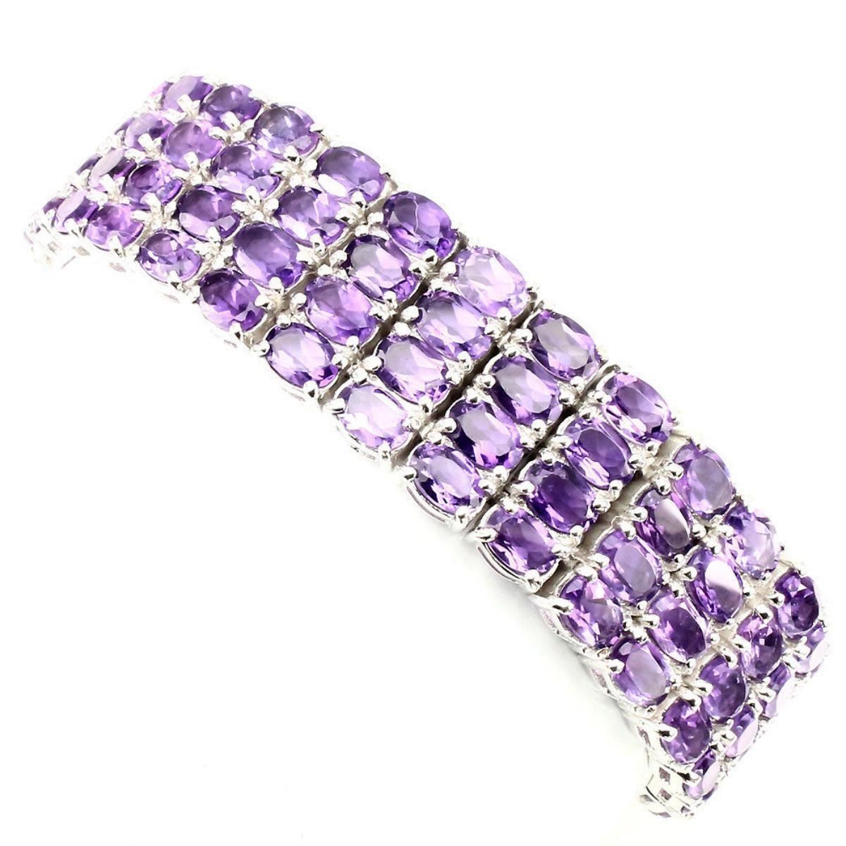 BRACELET.....TYPE OF METAL925 STERLING SILVER;PLATE14K WHITE GOLD;LENGTH (INCHES)7;MAIN STONEAMETHYST;TOTAL WEIGHT296.64 CT (TOTAL WEIGHT OF SILVER + STONE)DIMENSION* STONE 6.0 X 4.0 MM. * FACE BRACELET 163.0 X 17.0 MM.;MAIN STONE SHAPEOVAL CUT;MAIN STONE COLORTOP RICH PURPLE;CLARITY/GRADEIF TO VVS;LUSTERGLORIOUS;TREATMENTUNHEATED;ORIGINBRAZIL;HARDNESS7.0