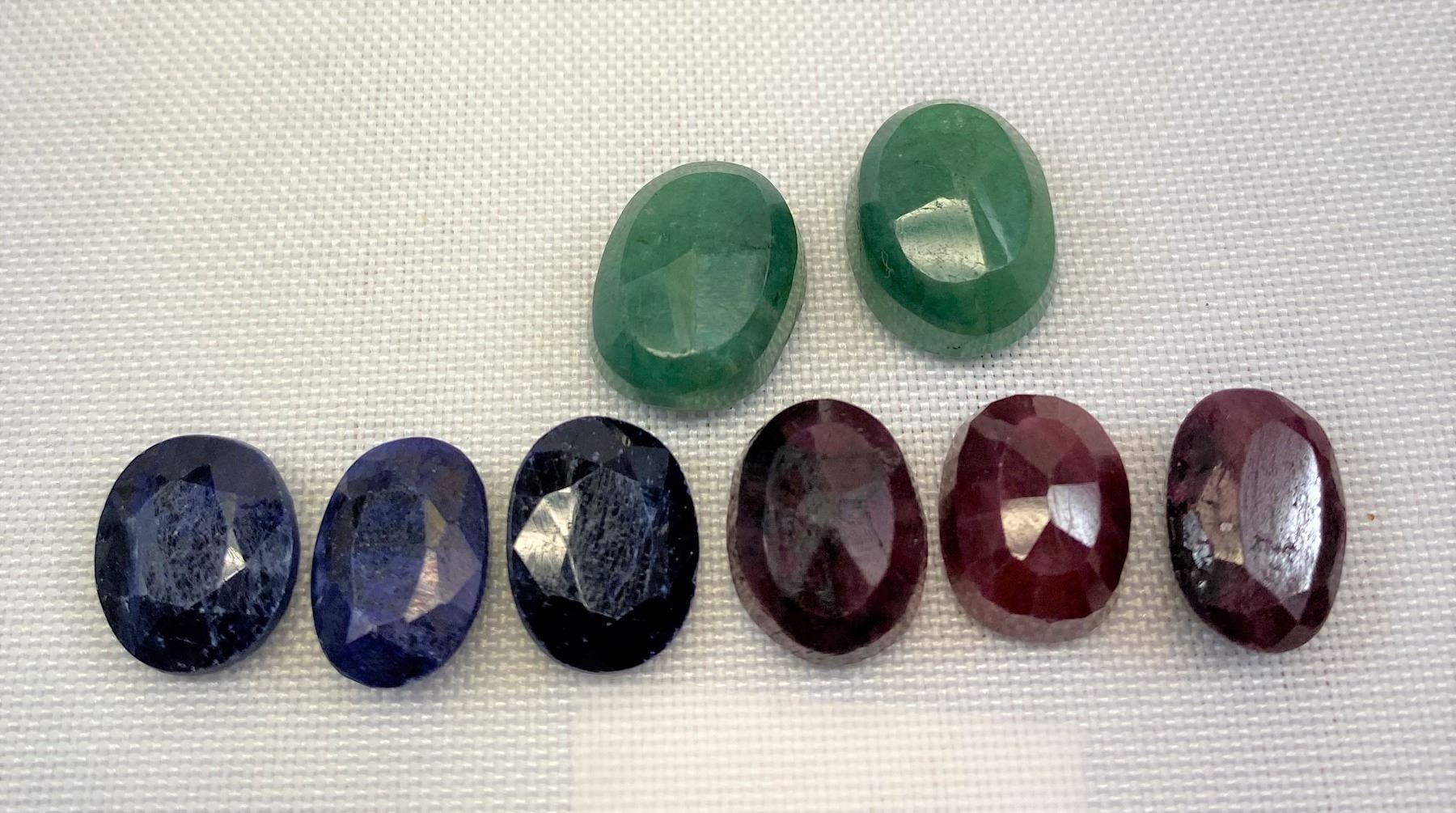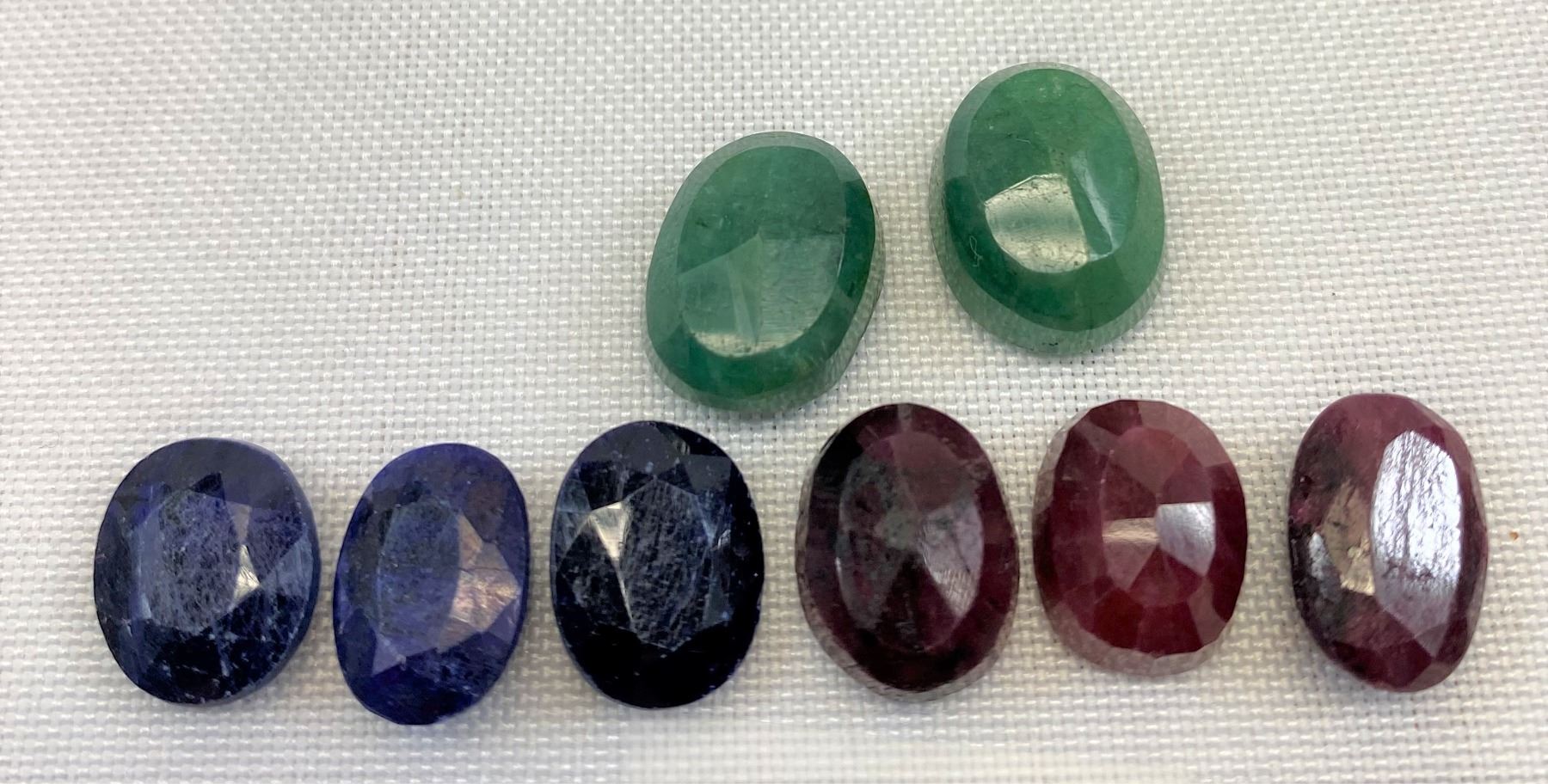 Natural Rough Gemstones Cut And Polished, Emerald - 18.15 CT, Brazil, Sapphire - 15.9 CT, Madagascar, Ruby - 25 CT, Madagascar
