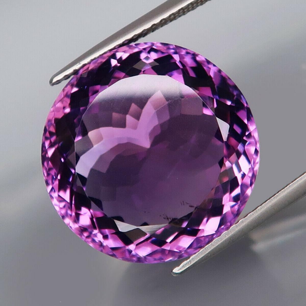 Amethyst SHAPE Round WEIGHT 18.75 Ct.SIZE 17.7 X 17.7 X 9.7 mm QUANTITY 1 Piece; COLOR Purple CLARITY VS; LUSTER Superior ORIGIN Bolivia TREATMENT None HARDNESS 7
