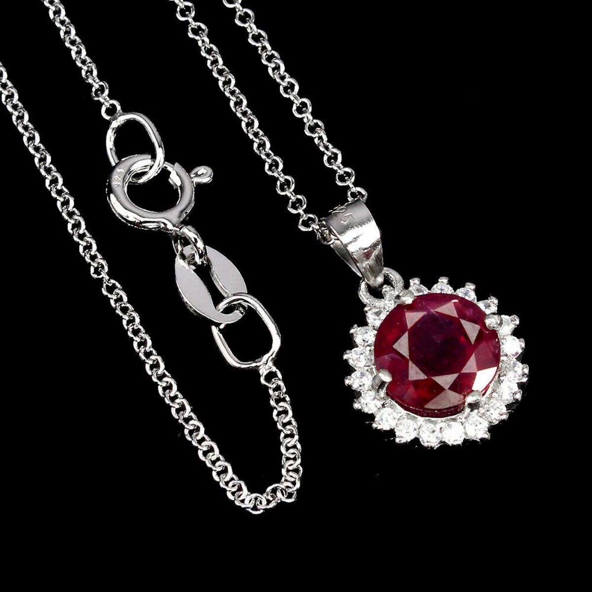925 STERLING SILVER;PLATE-14K WHITE GOLD;LENGTH (INCHES)18;MAIN STONE-RUBY;TOTAL WEIGHT-2.85 GRAM (TOTAL WEIGHT OF SILVER + STONE)DIMENSION-* STONE 7.0 MM. * CZ 1.0 MM. * TOTAL LENGTH 18.0 INCHES.* STONES PART LENGTH 16.0 X 10.0 MM.;MAIN STONE SHAPE-ROUND CUT;MAIN STONE COLOR-TOP BLOOD RED;TREATMENT-- Yes;ORIGIN-MADAGASCAR;HARDNESS-9;
