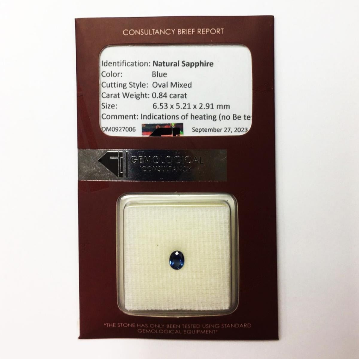 Natural Blue Sapphire; WEIGHT : 0.84 cts; SHAPE : Oval; SIZE ( L x W x D ) : 6.53 x 5.21 x 2.91 mm; QUANTITY : 1 piece; COLOR : Royal Blue; CLARITY : Flawless-VVS; AAA Grade; ORIGIN : Ceylon; HARDNESS : 9; LUSTER : AAA Fire!! TREATMENT : Normal Heated 100% Natural;