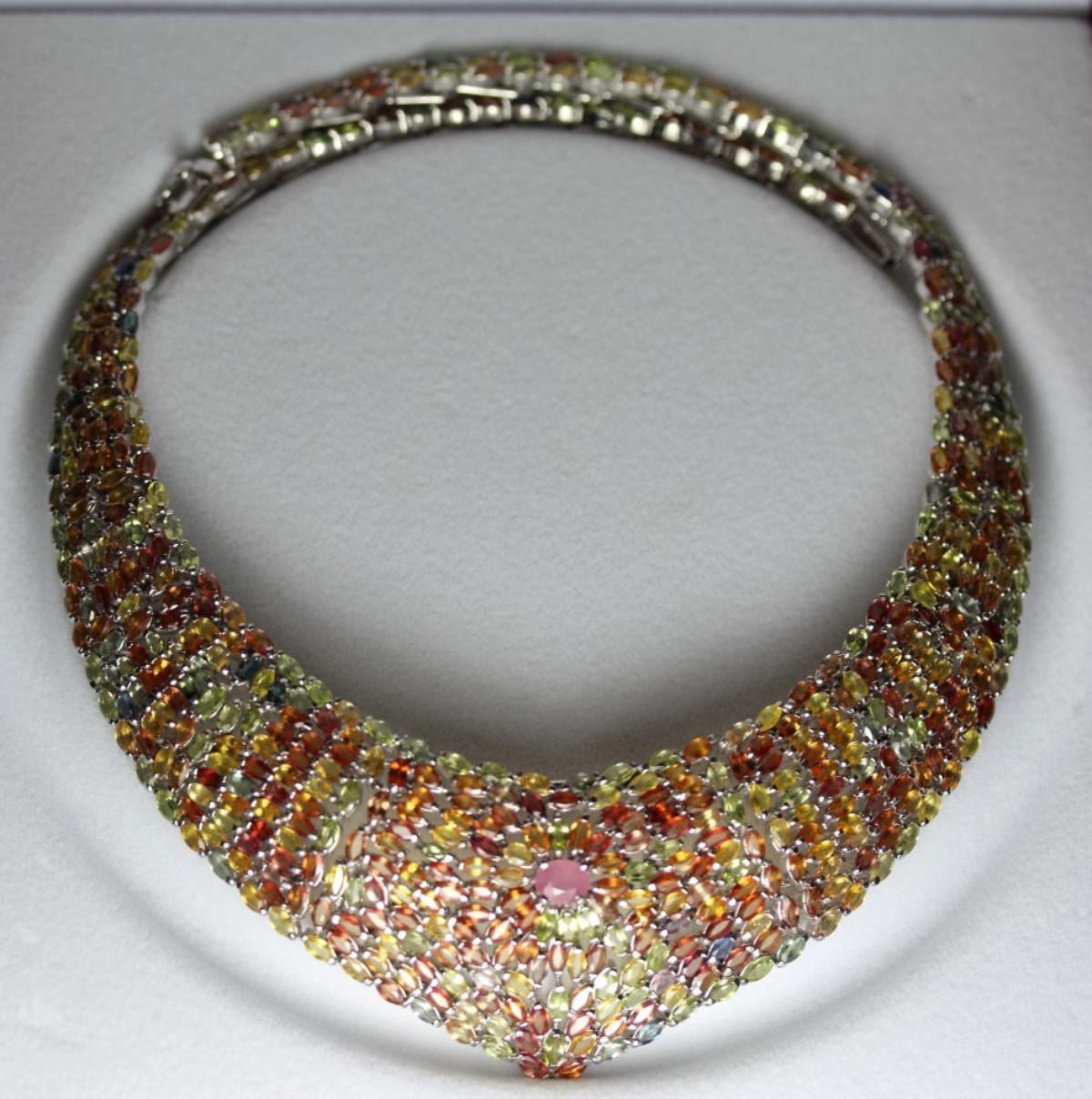 Natural Stunning Fancy Sapphire 465.25 Carats Necklace.......925 sterling silver with 14k white Gold coating.....Necklace size 17 inch; Total weight 465.25 Carats.....Multi Color Sapphire......origin - Africa.