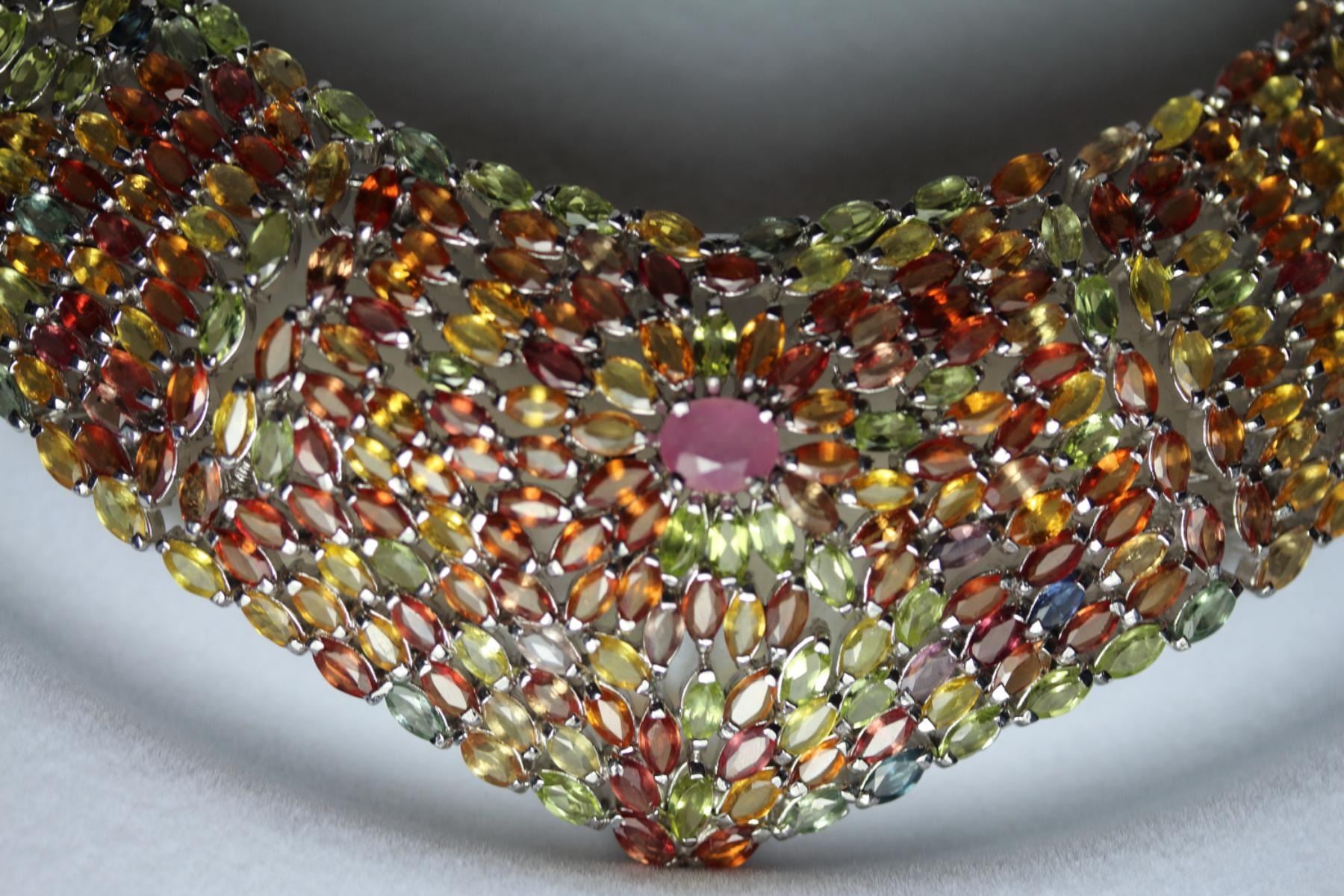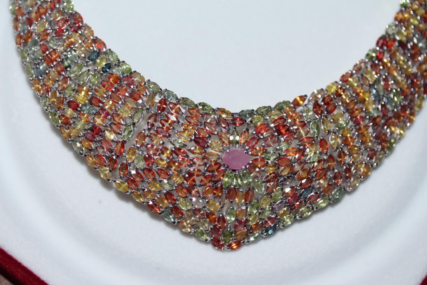 Natural Stunning Fancy Sapphire 465.25 Carats Necklace.......925 sterling silver with 14k white Gold coating.....Necklace size 17 inch; Total weight 465.25 Carats.....Multi Color Sapphire......origin - Africa.
