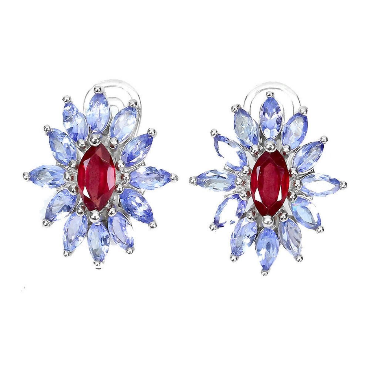 925 STERLING SILVER;PLATE-14K WHITE GOLD;MAIN STONE-RUBY;OTHER GEMS-TANZANITE;TOTAL WEIGHT-7.15 GRAM (TOTAL WEIGHT OF SILVER + STONE);DIMENSION-* STONE 5.0 X 2.5 TO 8.0 X 8.0 X 4.0 MM. * FACE EARRINGS 20.0 X 17.0 MM.;MAIN STONE SHAPE-MARQUISE; MAIN STONE COLOR-PIGEON BLOOD RED;TREATMENT- YES;ORIGIN-MADAGASCAR;HARDNESS-9;