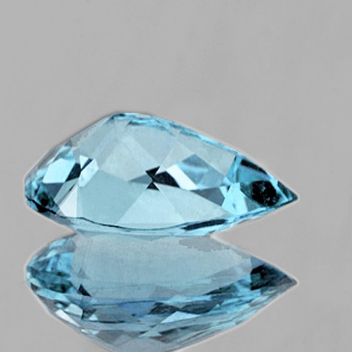 Natural AquamarineSIZE ( L x W x D ) : 9.00 x 6.00 mmCOLOR : Santa Maria BlueSHAPE : PearQUANTITY : 1 pieceLUSTER : Excellent!CLARITY : FlawlessHARDNESS : 8ORIGIN : Santa Maria de Itabira TREATMENT : 100% Natural, Unheated