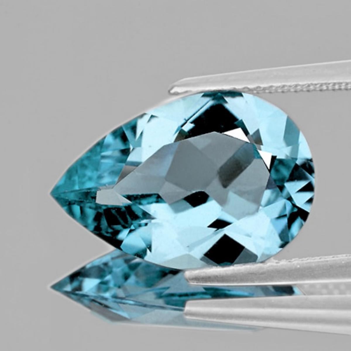 Natural AquamarineSIZE ( L x W x D ) : 9.00 x 6.00 mmCOLOR : Santa Maria BlueSHAPE : PearQUANTITY : 1 pieceLUSTER : Excellent!CLARITY : FlawlessHARDNESS : 8ORIGIN : Santa Maria de Itabira TREATMENT : 100% Natural, Unheated