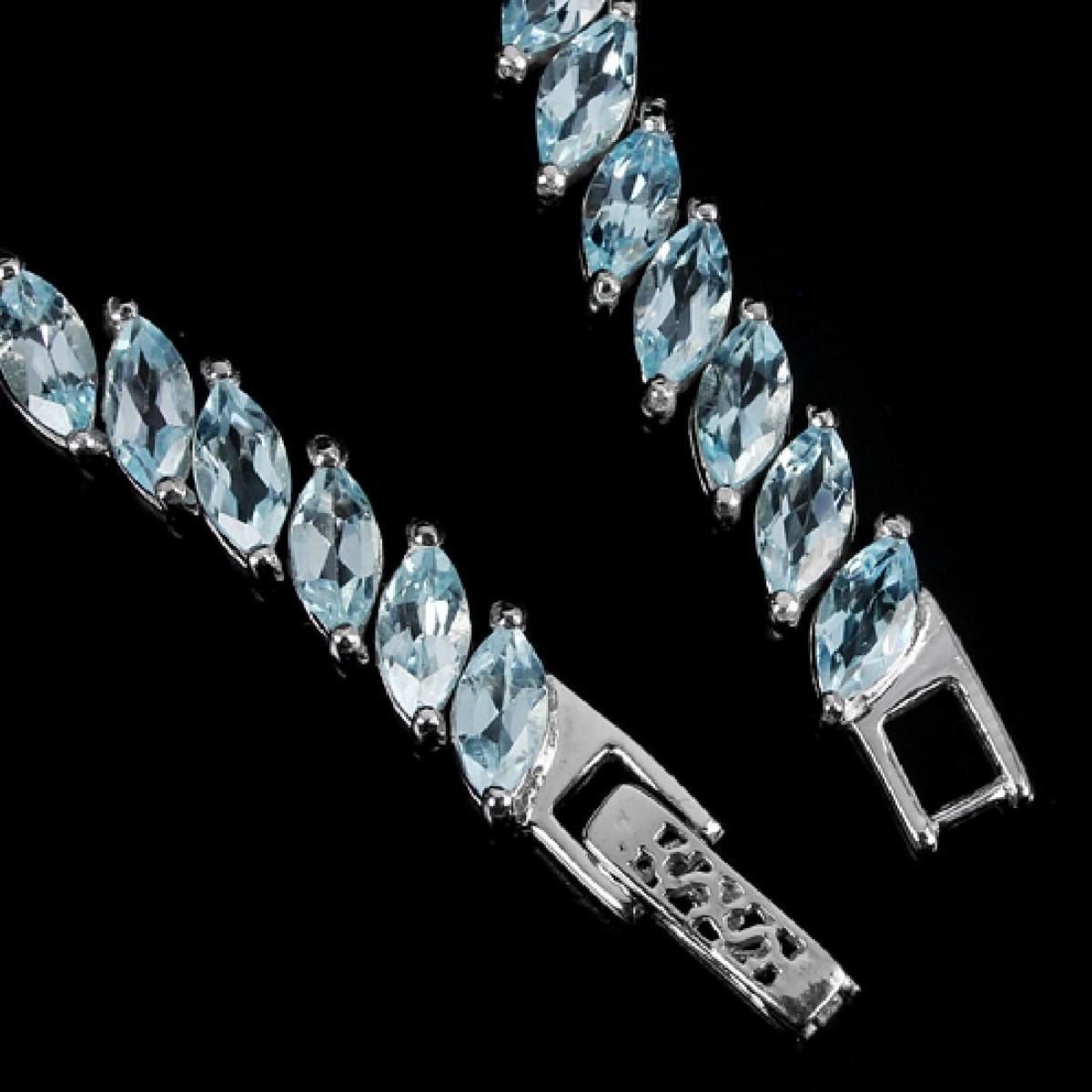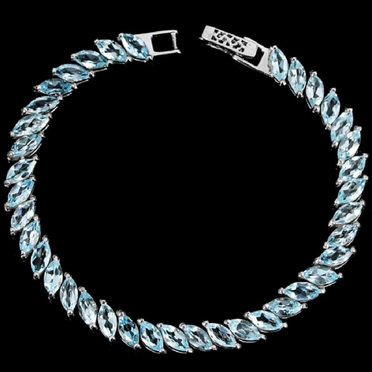 GENUINE AAA SKY BLUE TOPAZ MARQUISE 925 SILVER BRACELET 14K WHITE GOLD COATING; LENGTH OF ITEM (Inch.)7.25;ITEM QUANTITY-1;STONE SHAPE-MARQUISE PORTUGUESE CUT;STONE DIMENSION-7 X 3.5 MM.;ITEM WEIGHT-17.2 GRAM;COLOR-SKY BLUE;CLARITY-IF TO VVS;LUSTER-ENCHANTING;TREATMENT-IRRADIATION;ORIGIN OF STONE-AFRICA;HARDNESS-8