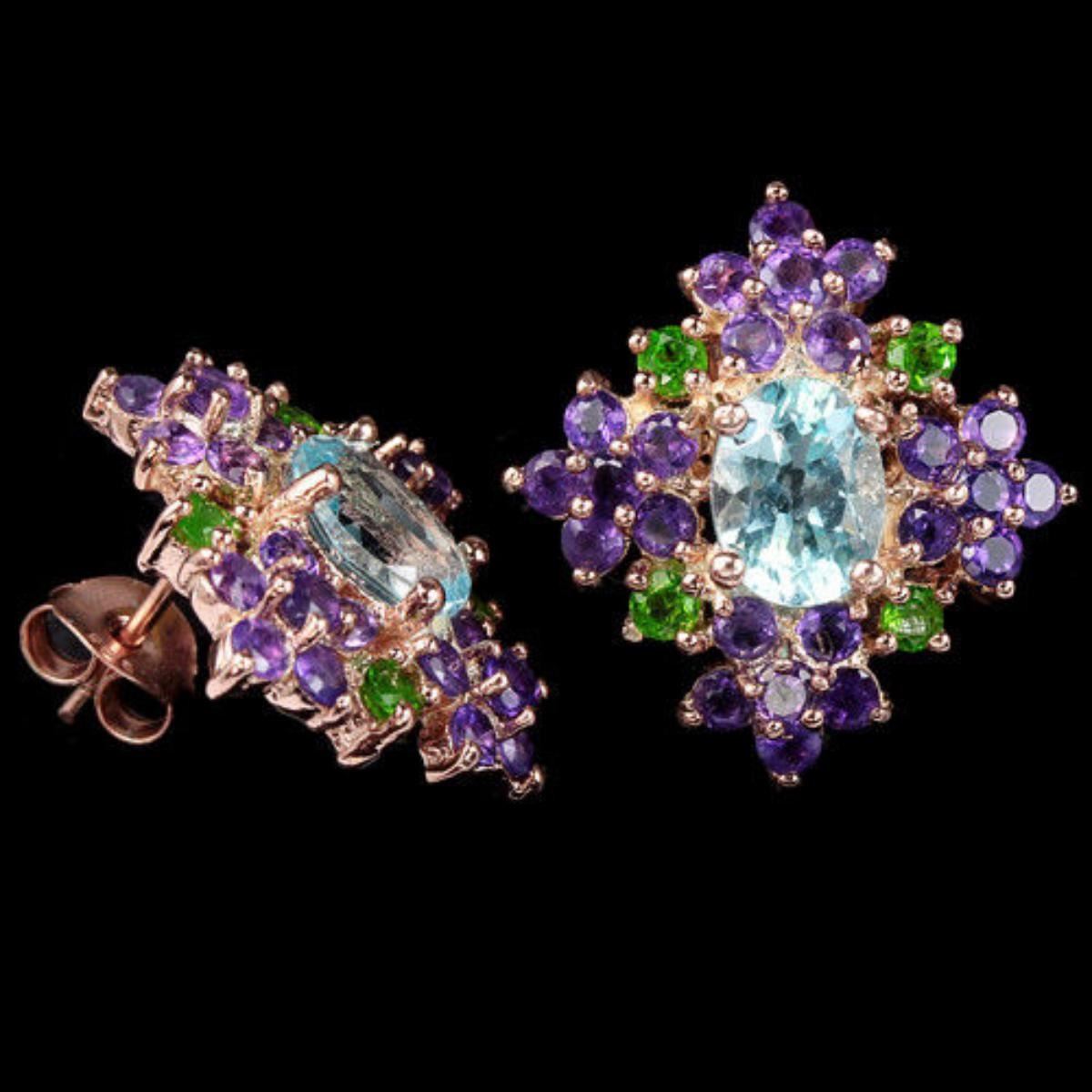REAL AAA SKY BLUE TOPAZ CHROME DIOPSIDE 925 SILVER EARRING 14K PINK GOLD COATING; STONE SHAPEOVAL & ROUNDSTONE DIMENSION8 X 6 MM. , 2.5 MM. & 2.2 MM.ITEM WEIGHT7 GRAMCOLORMULTI COLORCLARITYIF, VVS - VSLUSTERDAZZLINGTREATMENTUNHEATEDORIGIN OF STONEAFRICA & BRAZILHARDNESS7 - 8FACE OF EARRING 24 X 23 MM.