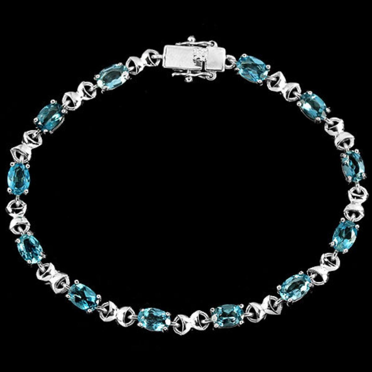 GENUINE AAA SKY BLUE TOPAZ 925 SILVER BRACELET 14K WHITE GOLD COATING; LENGTH OF ITEM (Inch.) 6.75 ; ITEM QUANTITY -1; STONE SHAPE -OVAL; STONE DIMENSION -6 X 4 MM.; ITEM WEIGHT -10.43 GRAM; COLOR -LONDON BLUE; CLARITY -IF TO VVS; LUSTER -DAZZLING; TREATMENT -IRRADIATION; ORIGIN OF STONE- AFRICA; HARDNESS -8;
