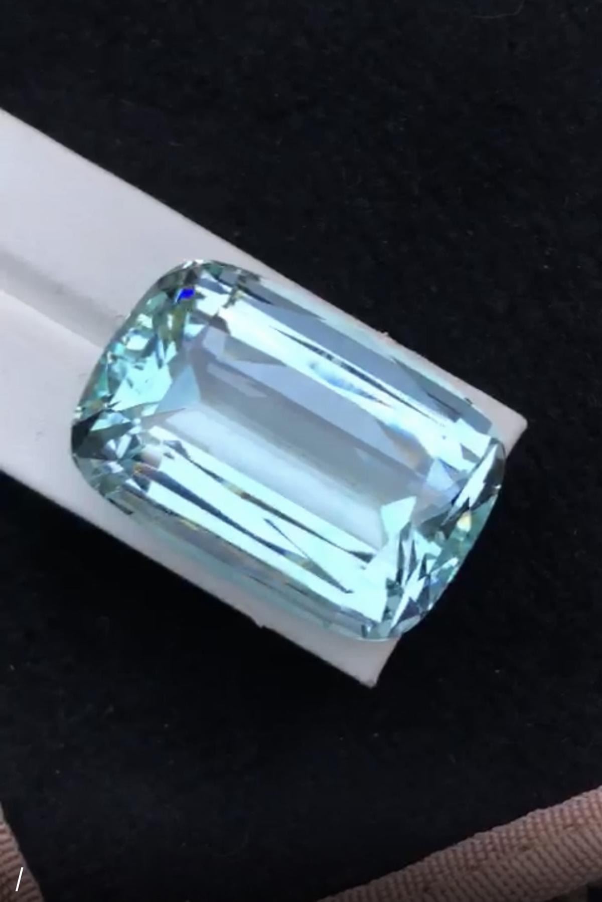 Natural Santa Maria Aquamarine 142 carats - Flawless..... Santa Maria Color as images; Cushion Cut; Flawless/VVS.. size 39 x 24 MM; Completely untreated natural earth mined.