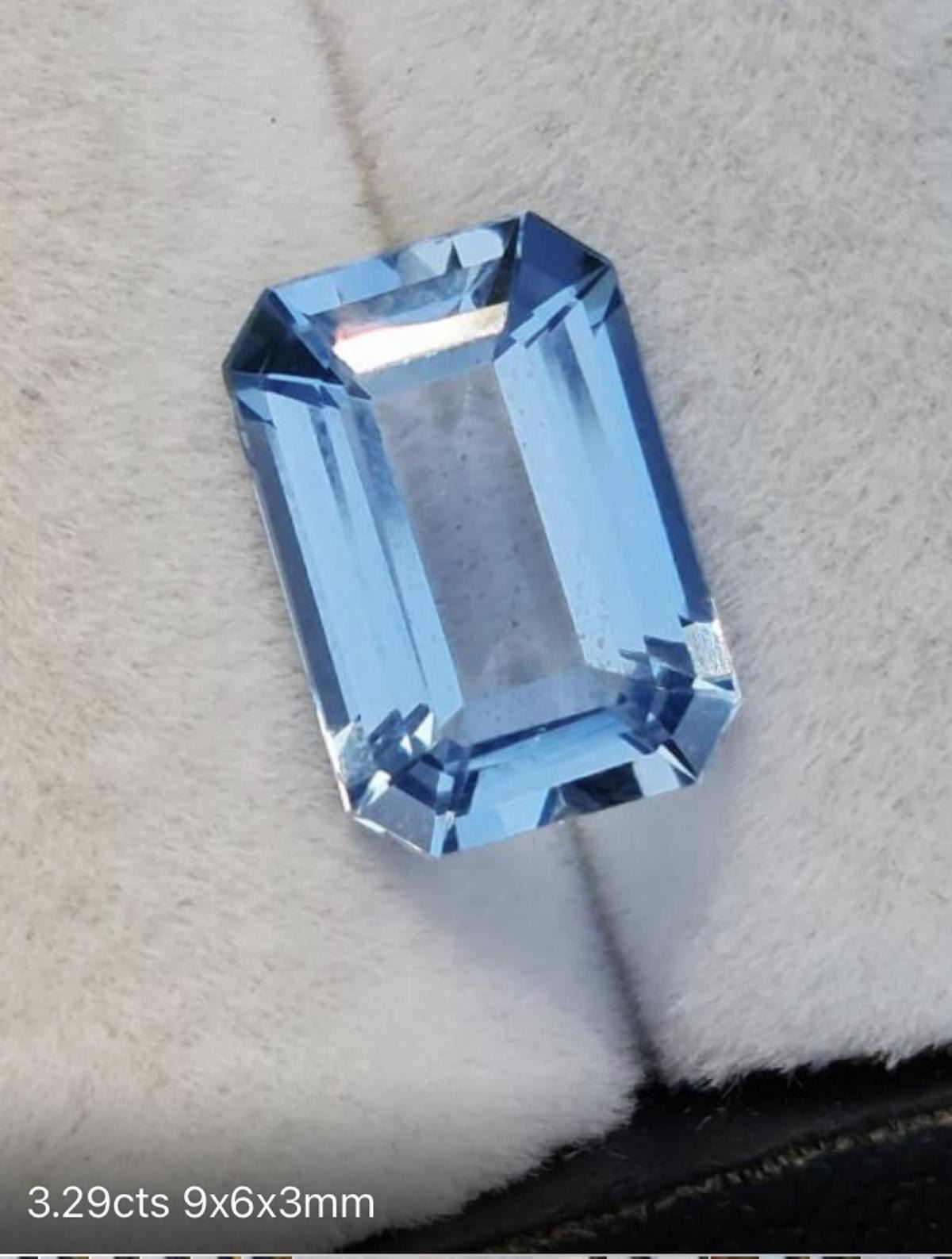 Natural Aquamarine; WEIGHT : 3.29 cts; SHAPE : Emerald Cut; SIZE ( L x W x D ) : 9.00 x6.00 x 3.00 mm; QUANTITY : 1 piece; COLOR : Aqua Blue; CLARITY : Flawless-VVS ; ORIGIN : Brazil; HARDNESS : 8; LUSTER : Best AAA Fire!!! TREATMENT : UNHeated 100% NATURAL;