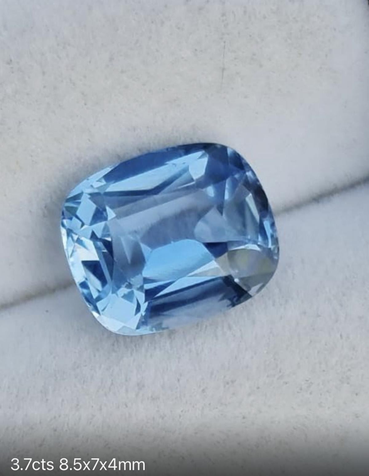Natural Aquamarine; WEIGHT : 3.70 cts; SHAPE : Cushion Cut; SIZE ( L x W x D ) : 8.50 x7.00 x 4.00 mm; QUANTITY : 1 piece; COLOR : Aqua Blue; CLARITY : Flawless-VVS ; ORIGIN : Brazil; HARDNESS : 8; LUSTER : Best AAA Fire!!! TREATMENT : UNHeated 100% NATURAL;