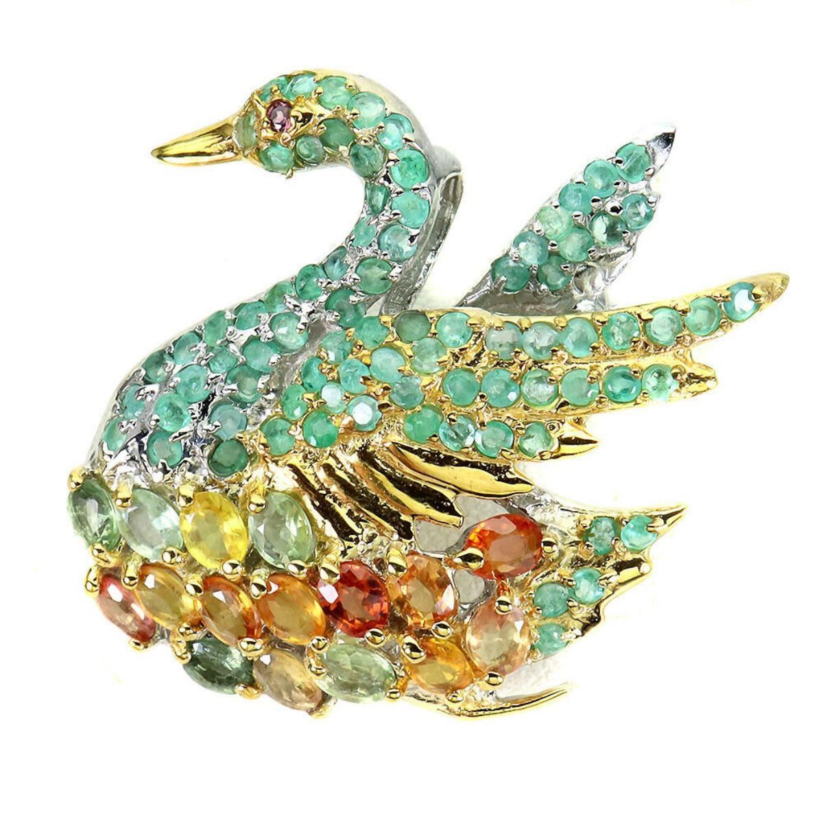 925 STERLING SILVER;PLATE2-TONE WHITE & YELLOW 14K GOLD;MAIN STONESAPPHIRE;OTHER GEMSEMERALD, RHODOLITE GARNET;TOTAL WEIGHT9.77 GRAM (TOTAL WEIGHT OF SILVER + STONE)DIMENSION* STONE 1.5 TO 4.0 X 3.0 MM.;* FACE BROOCH 38.0 X 33.0 MM.;MAIN STONE SHAPEOVAL CUT;MAIN STONE COLORMULTI-COLOR;CLARITY/GRADEIF TO VVS;ORIGIN- Colombia;HARDNESS-9.0