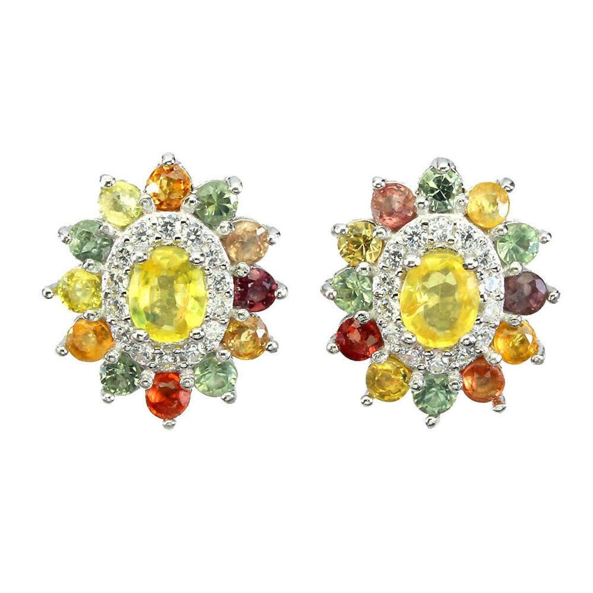 925 STERLING SILVER;PLATE-14K WHITE GOLD;MAIN STONE-SAPPHIRE;TOTAL WEIGHT-3.6 GRAM (TOTAL WEIGHT OF SILVER + STONE);DIMENSION -* STONE 2.0 TO 5.0 X 4.0 MM. * FACE EARRINGS 14.0 X 12.0 MM.;MAIN STONE SHAPE-OVAL;MAIN STONE COLOR-YELLOW;TREATMENT-YES;HARDNESS-9;