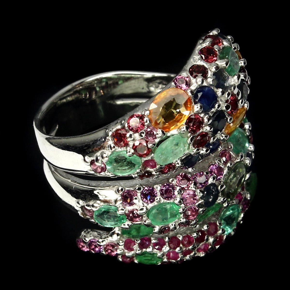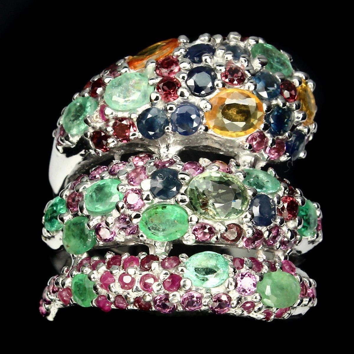 925 STERLING SILVER; PLATE -14K WHITE GOLD; RING SIZE- 9.5; MAIN STONE -SAPPHIRE; OTHER GEMS -EMERALD,RHODOLITE GARNET,RUBY; TOTAL WEIGHT -51.13 CT (TOTAL WEIGHT OF SILVER + STONE) DIMENSION * STONE 1.5 TO 5.0 X 4.0 MM. * RING SIZE 9.5 * FACE RING 25.0 X 22.0 MM.; MAIN STONE SHAPE -OVAL CUT; MAIN STONE COLOR -MULTI-COLOR; CLARITY/GRADE -IF TO VVS; LUSTER EXQUISITE TREATMENT -HEATED; ORIGIN -SONGEA - AFRICA; HARDNESS 7.0 - 9.0