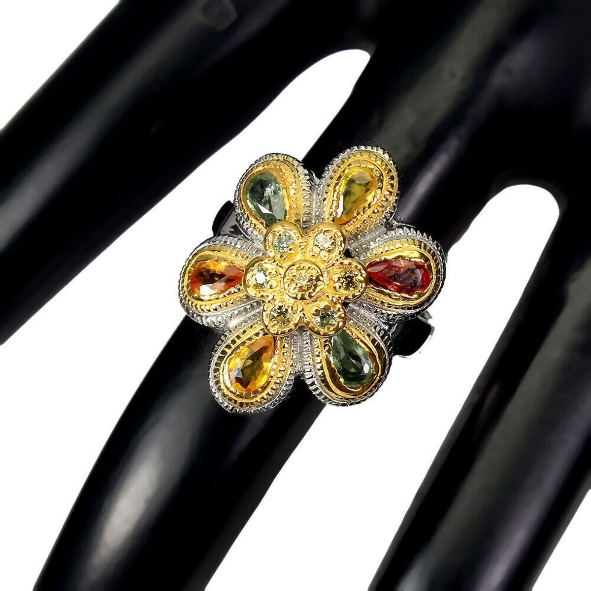 925 STERLING SILVER;PLATE-2-TONE WHITE & YELLOW 14K GOLD;RING SIZE-8(RESIZABLE);MAIN STONE-SAPPHIRE;OTHER GEMS-SAPPHIRE DIAMOND CUT;TOTAL WEIGHT-6.71 GRAM (TOTAL WEIGHT OF SILVER + STONE);DIMENSION-* STONE 2.0 TO 6.0 X 4.0 MM* RING SIZE 8.0* FACE RING 24.0 X 18.0 MM.;MAIN STONE SHAPE-PEAR CUT;MAIN STONE COLOR-MULTI-COLOR;CLARITY/GRADE-IF TO VVS;ORIGINSONGEA - AFRICA;HARDNESS-9.0;