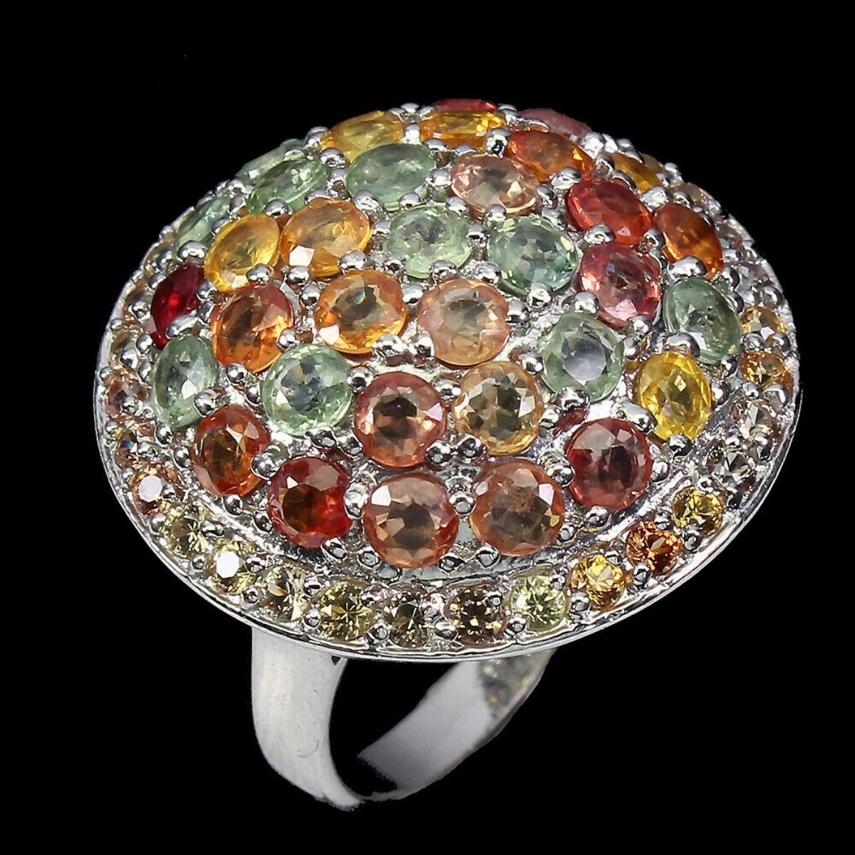 925 STERLING SILVER;PLATE-14K WHITE GOLD;RING SIZE-7.5(RESIZABLE);MAIN STONE-SAPPHIRE;OTHER GEMS-SAPPHIRE DIAMOND CUT;TOTAL WEIGHT-8.13 GRAM (TOTAL WEIGHT OF SILVER + STONE);DIMENSION-* STONE 1.5 TO 3.0 MM. * RING SIZE 7.5 * FACE RING 25.0 X 25.0 MM.;MAIN STONE SHAPE-ROUND CUT;MAIN STONE COLOR-MULTI-COLOR;CLARITY/GRADE-IF TO VVS;TREATMENT-HEATED;ORIGIN-SONGEA - AFRICA;HARDNESS-9;