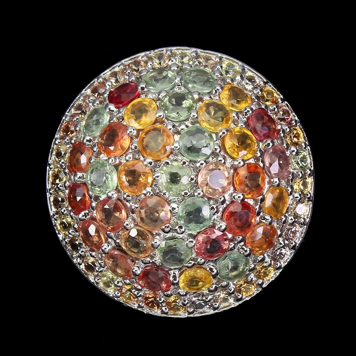 925 STERLING SILVER;PLATE-14K WHITE GOLD;RING SIZE-7.5(RESIZABLE);MAIN STONE-SAPPHIRE;OTHER GEMS-SAPPHIRE DIAMOND CUT;TOTAL WEIGHT-8.13 GRAM (TOTAL WEIGHT OF SILVER + STONE);DIMENSION-* STONE 1.5 TO 3.0 MM. * RING SIZE 7.5 * FACE RING 25.0 X 25.0 MM.;MAIN STONE SHAPE-ROUND CUT;MAIN STONE COLOR-MULTI-COLOR;CLARITY/GRADE-IF TO VVS;TREATMENT-HEATED;ORIGIN-SONGEA - AFRICA;HARDNESS-9;