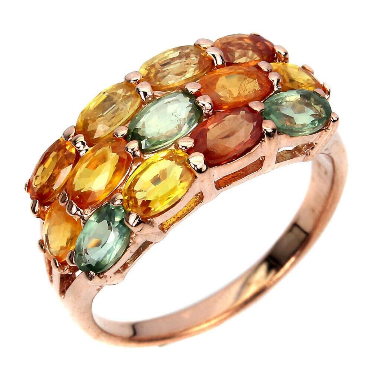 925 STERLING SILVER;PLATE-14K ROSE GOLD;RING SIZE(INCHES)-9(RESIZABLE);MAIN STONE-SAPPHIRE;TOTAL WEIGHT-4.37 GRAM (TOTAL WEIGHT OF SILVER + STONE);DIMENSION-* STONE 5.0 X 3.0 MM. * RING SIZE 9.0 * FACE RING 22.0 X 10.0 MM.;MAIN STONE SHAPE-OVAL CUT;MAIN STONE COLOR-MULTI-COLOR;CLARITY/GRADE-IF TO VVS;TREATMENT-HEATED;ORIGIN-SONGEA - AFRICA;HARDNESS-9.0;