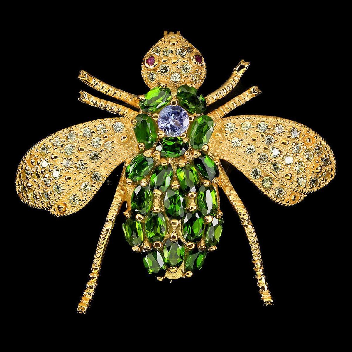 Natural Sapphire, Ruby & Chrome Diopside Bee Brooch