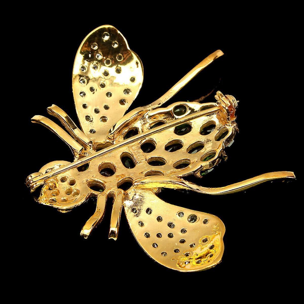 925 STERLING SILVER;PLATE-14K YELLOW GOLD;MAIN STONE-CHROME DIOPSIDE;OTHER GEMS-RUBY, SAPPHIRE, TANZANITE;TOTAL WEIGHT-12.04 GRAM (TOTAL WEIGHT OF SILVER + STONE)DIMENSION* STONE 1.5 TO 5.0 X 3.0 MM. * FACE BROOCH 47.0 X 39.0 MM.;MAIN STONE SHAPE-OVAL CUT;MAIN STONE COLOR-TOP RICH GREEN;CLARITY/GRADE-IF TO VVS;TREATMENT-UNHEATED;ORIGIN-Ceylone; Madgascar, RUSSIAHARDNESS- 5 & 9