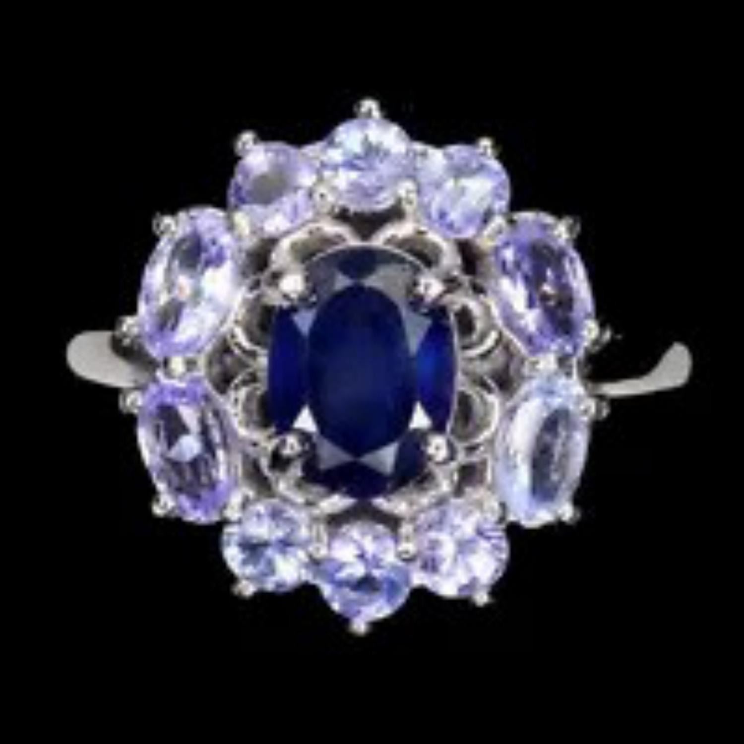 925 STERLING SILVER;PLATE14K WHITE GOLD;RING SIZE/LENGTH (INCHES)9;MAIN STONE - Sapphire & TANZANITE; TREATMENT - Yes; ORIGIN - Ceylone & Tanzania HARDNESS -9.00