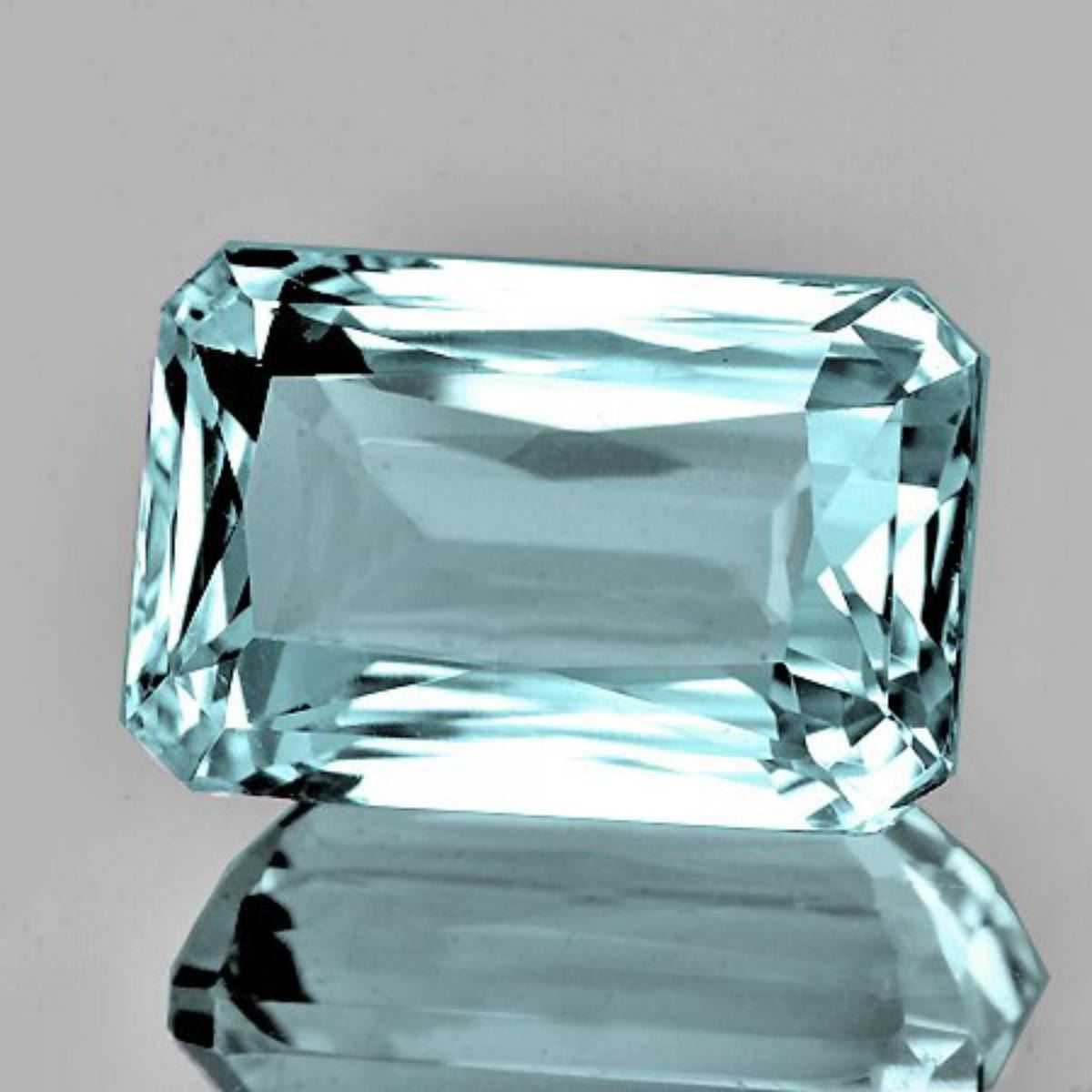 Natural Aquamarine; WEIGHT : 8.63 cts; SHAPE : Rectangle (Scissor Cut) SIZE ( L x W x D ) : 17.56 x 11.13 x 5.60 mm QUANTITY : 1 piece; COLOR : Blue ; CLARITY : Flawless-VVS; ORIGIN : Brazil; HARDNESS : 8; LUSTER : Excellent TREATMENT : UNHeated 100% NATURAL;