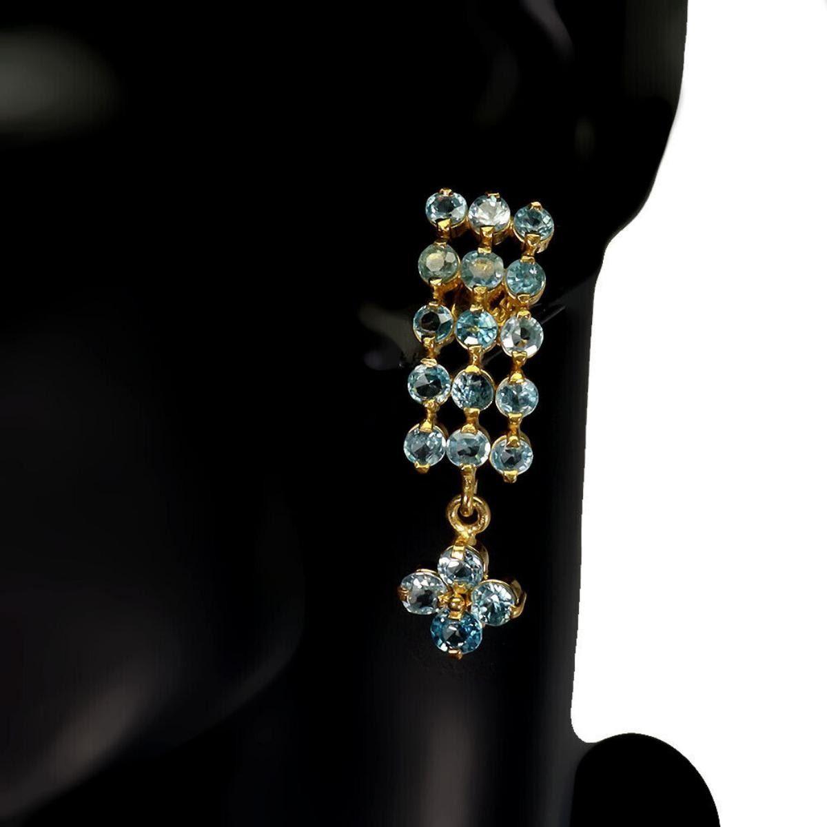925 STERLING SILVER;PLATE-14K YELLOW GOLD;MAIN STONE-BLUE ZIRCON;TOTAL WEIGHT-8.88 GRAM (TOTAL WEIGHT OF SILVER + STONE);DIMENSION-* STONE 3.5 TO 4.0 MM. * FACE EARRINGS 43.0 X 11.0 MM.;MAIN STONE SHAPE-ROUND; MAIN STONE COLOR-SEAFOAM BLUE;CLARITY/GRADE-IF TO VVS;ORIGIN-CAMBODIA;HARDNESS-7;