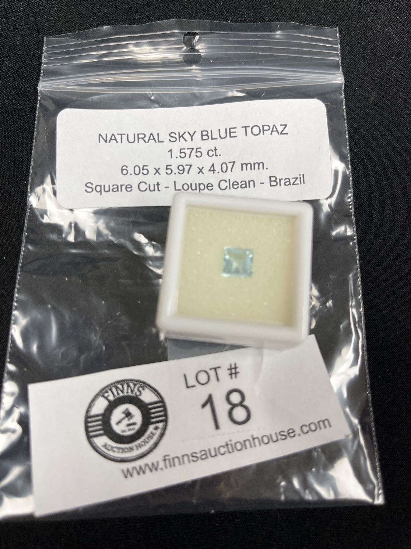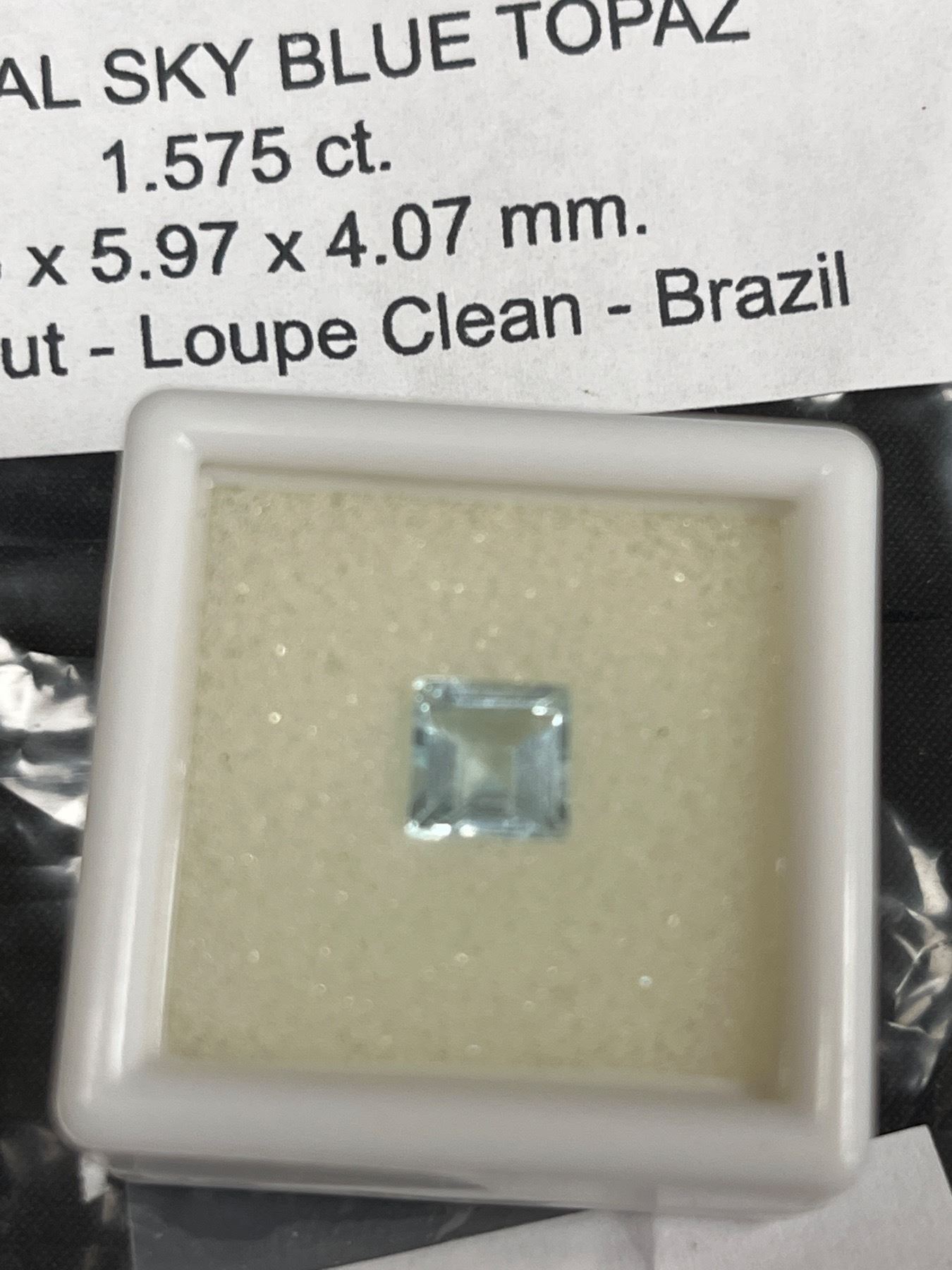 Natural Sky Blue Topaz 1.575ct 6.05 x 5.97 x4.07 mm Square Cut- Loupe Clean- Brazil