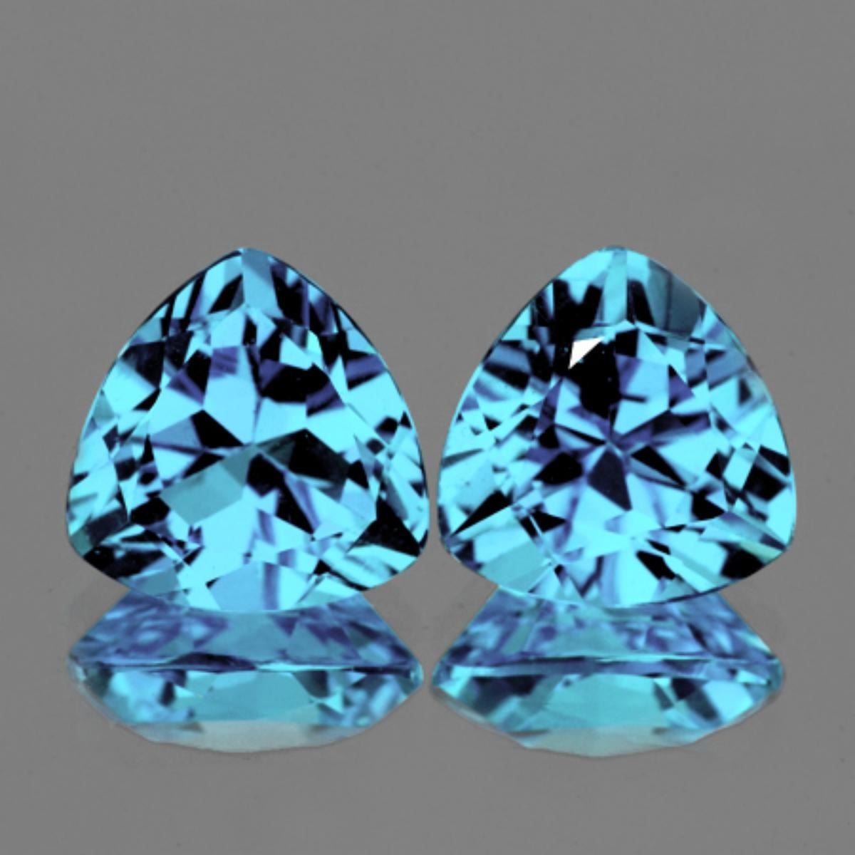 Natural Topaz; WEIGHT : 11.23cts; SHAPE : Trilliant; SIZE ( L x W x D ) : 12.00 mm; QUANTITY : 2 pieces ( Perfectly Matched Pair ) COLOR : Top AAA Sky Blue; CLARITY : IF-VVS1; ORIGIN : Brazil; HARDNESS : 8; LUSTER : Excellent!!! TREATMENT : Heated;