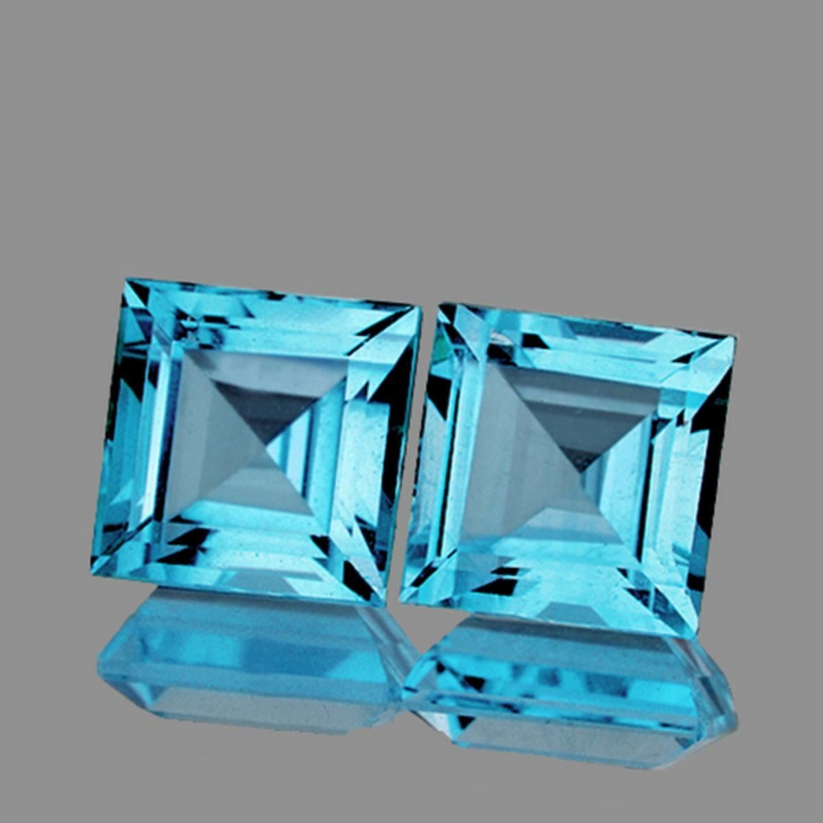 Natural Sky Blue TopazSIZE ( L x W x D ) : 6.00 mm;COLOR : Sky Blue AAA Color;SHAPE : Square;QUANTITY : 2 pieces ;LUSTER : Excellent!CLARITY : IF-VVS1 ;BEST QUALITY;HARDNESS : 8;ORIGIN : Brazil; TREATMENT : Standard;