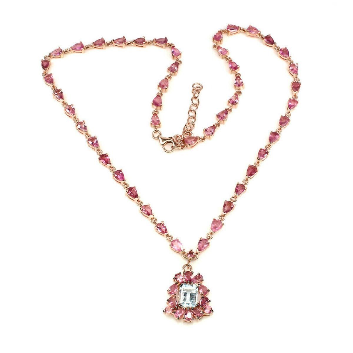 925 STERLING SILVER;PLATE2-TONE BLACK RHODIUM & 14K ROSE GOLD;LENGTH (INCHES)19.5;MAIN STONE-SKY BLUE TOPAZ;OTHER GEMS-TOURMALINE;TOTAL WEIGHT-123.42 CT (TOTAL WEIGHT OF SILVER + STONE)DIMENSION* STONE 3.0 TO 9.0 X 7.0 MM. * STONES PART LENGTH 466.0 X 30.0 MM.;MAIN STONE SHAPE-OCTAGON CUT;MAIN STONE COLOR-TOP SKY BLUE;CLARITY/GRADEIF;LUSTERLUXURIOUS;TREATMENTHEATED;ORIGINAFRICA;HARDNESS8;