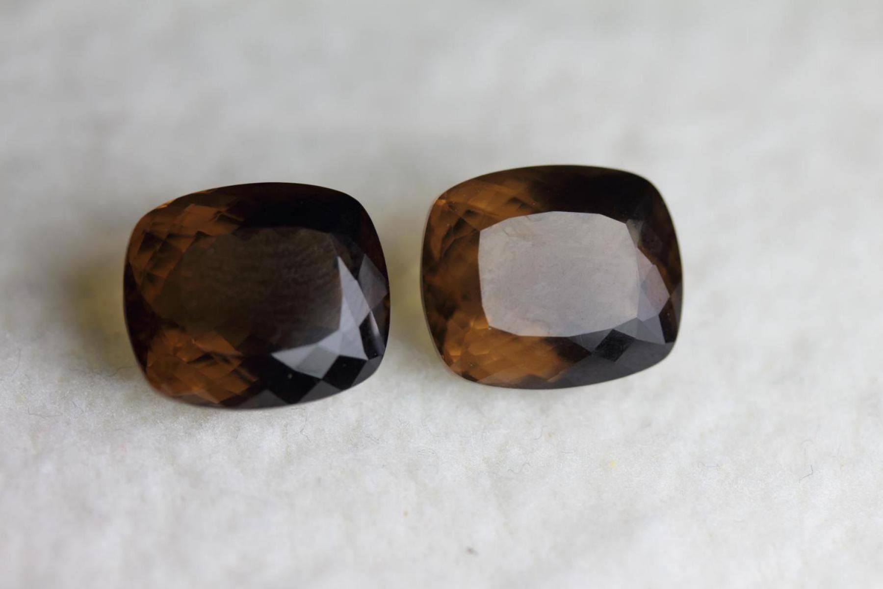 Natural Smoky Quartz Pair 13x11 MM - Flawless- VVS, weight 14.61 Carats ...perfectly matched pair, Hardness - 7; clarity - Flawless- VVS;Origin - Brazil