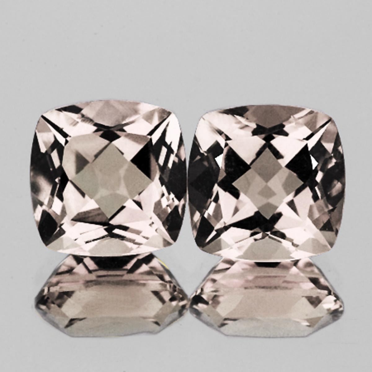 Natural Morganite; WEIGHT : 3.67 cts; SHAPE : Cushion (Portuguese Cut) SIZE ( L x W x D ) : 8.00 mm; QUANTITY : 2 pieces (Perfect Matching Pair) COLOR : Soft Golden Pink ; CLARITY : Flawless-VVS; ORIGIN : Brazil; HARDNESS : 8; LUSTER : AAA Fire!! TREATMENT : Unheated 100% NATURAL;