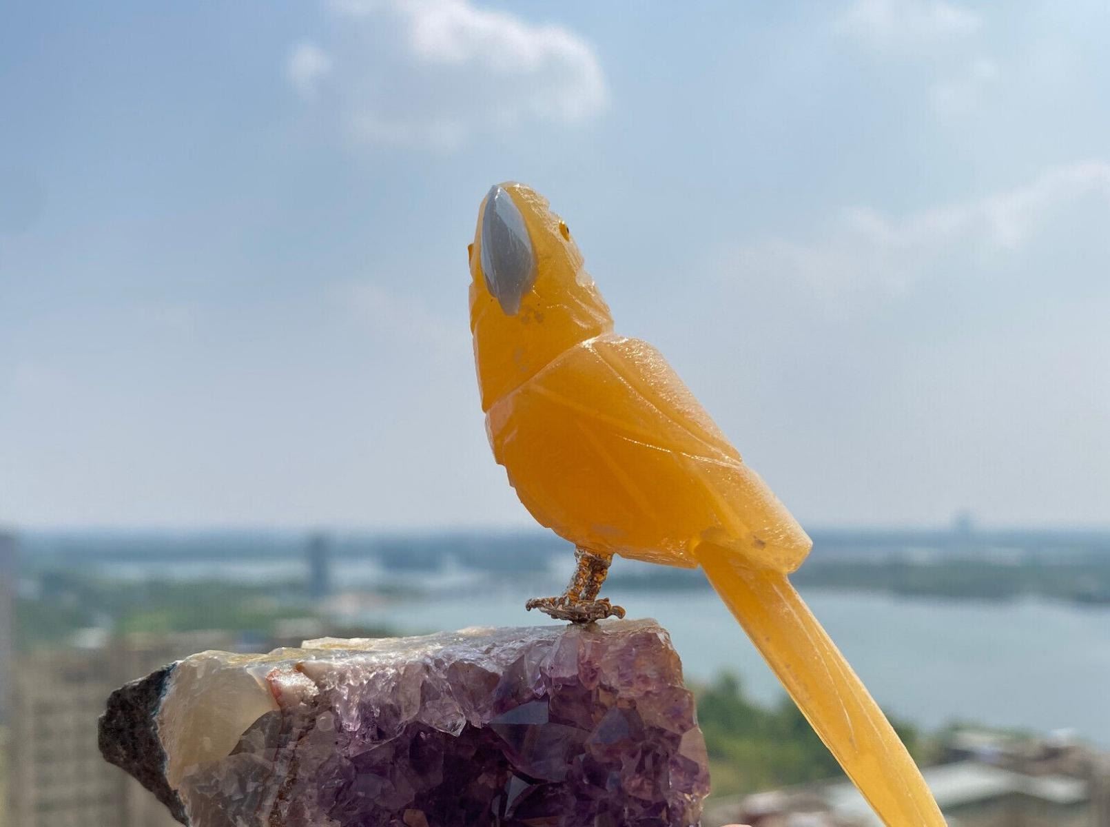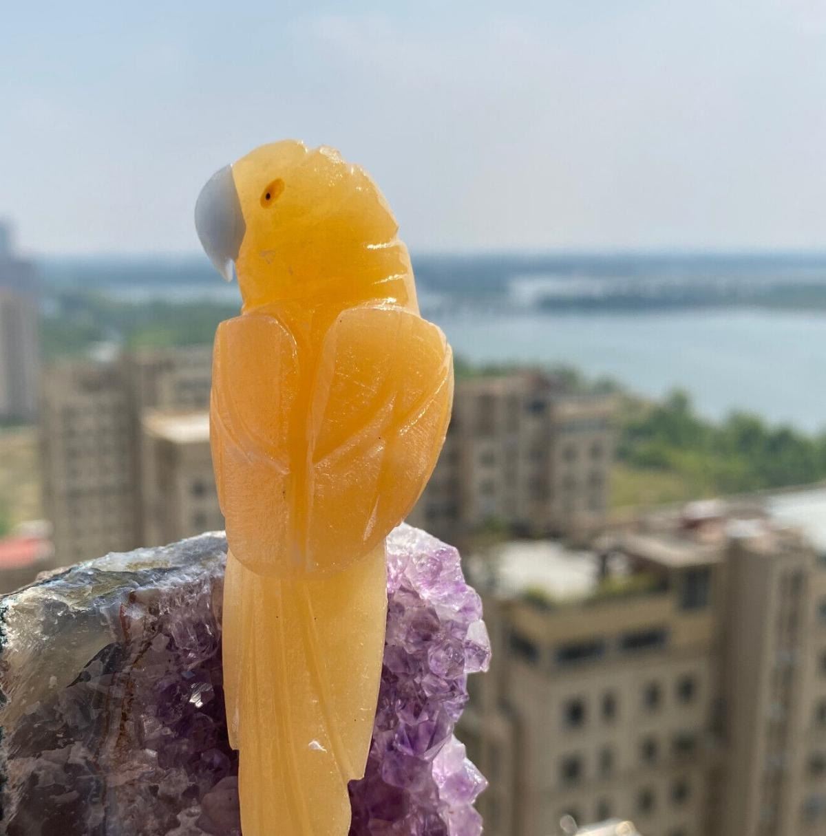 Natural Stone Handcarved Quartz Bird ......Bird Length 101 MM; amethyst base; Material?Natural Quartz Crystal