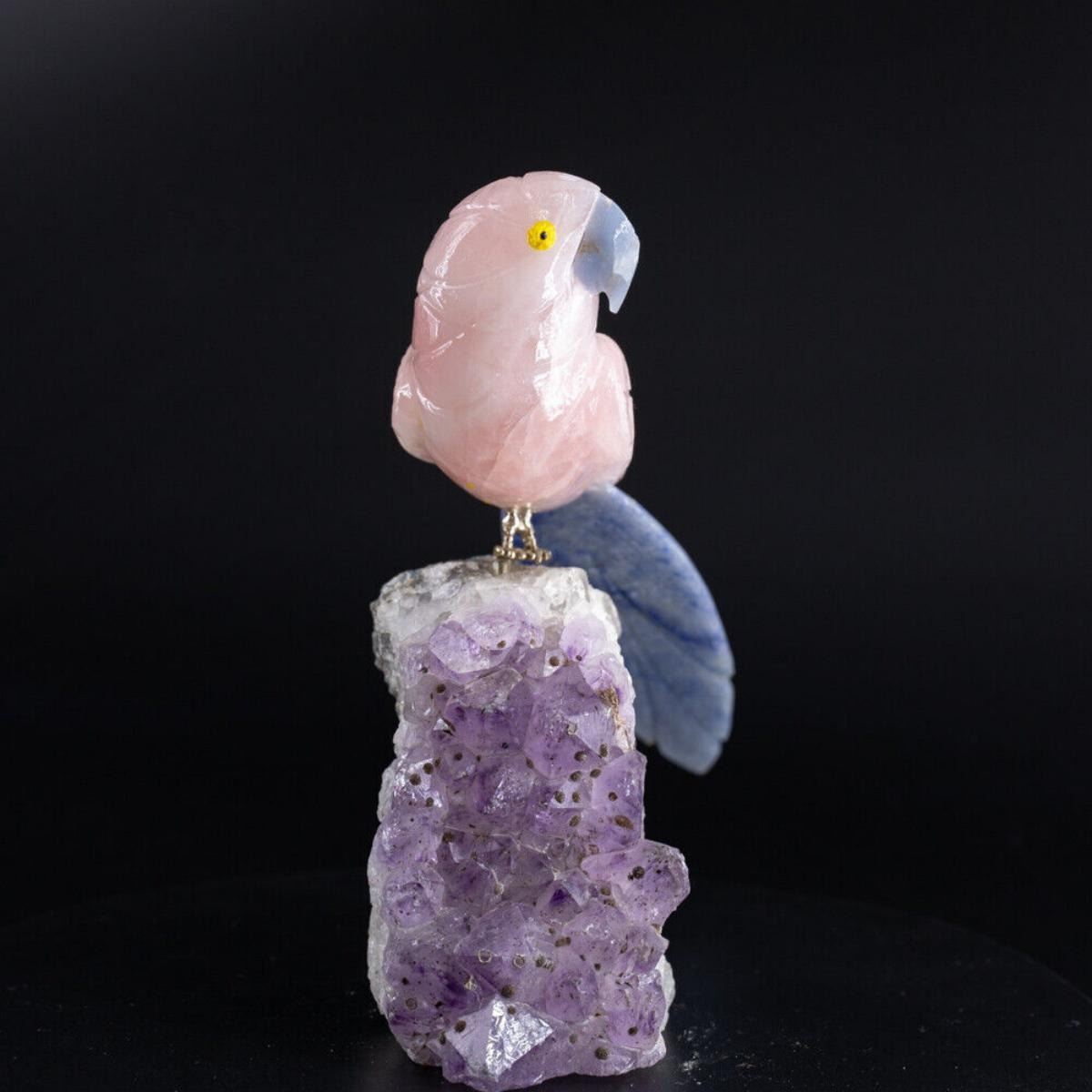 Natural Stone Handcarved Quartz Bird ......Bird Length 155 MM; amethyst base; Material?Natural Quartz Crystal