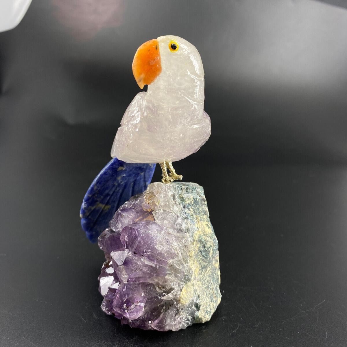 Natural Stone Handcarved Quartz Bird ......Bird Length 119 MM; Bird weight with amethyst base 289 g; Material Natural Quartz Crystal