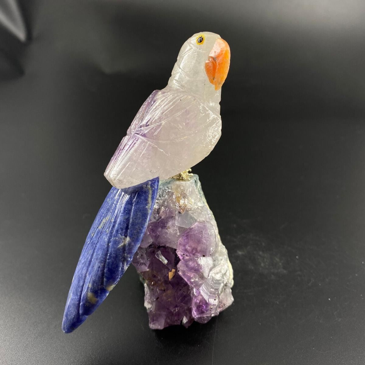 Natural Stone Handcarved Quartz Bird ......Bird Length 119 MM; Bird weight with amethyst base 289 g; Material Natural Quartz Crystal