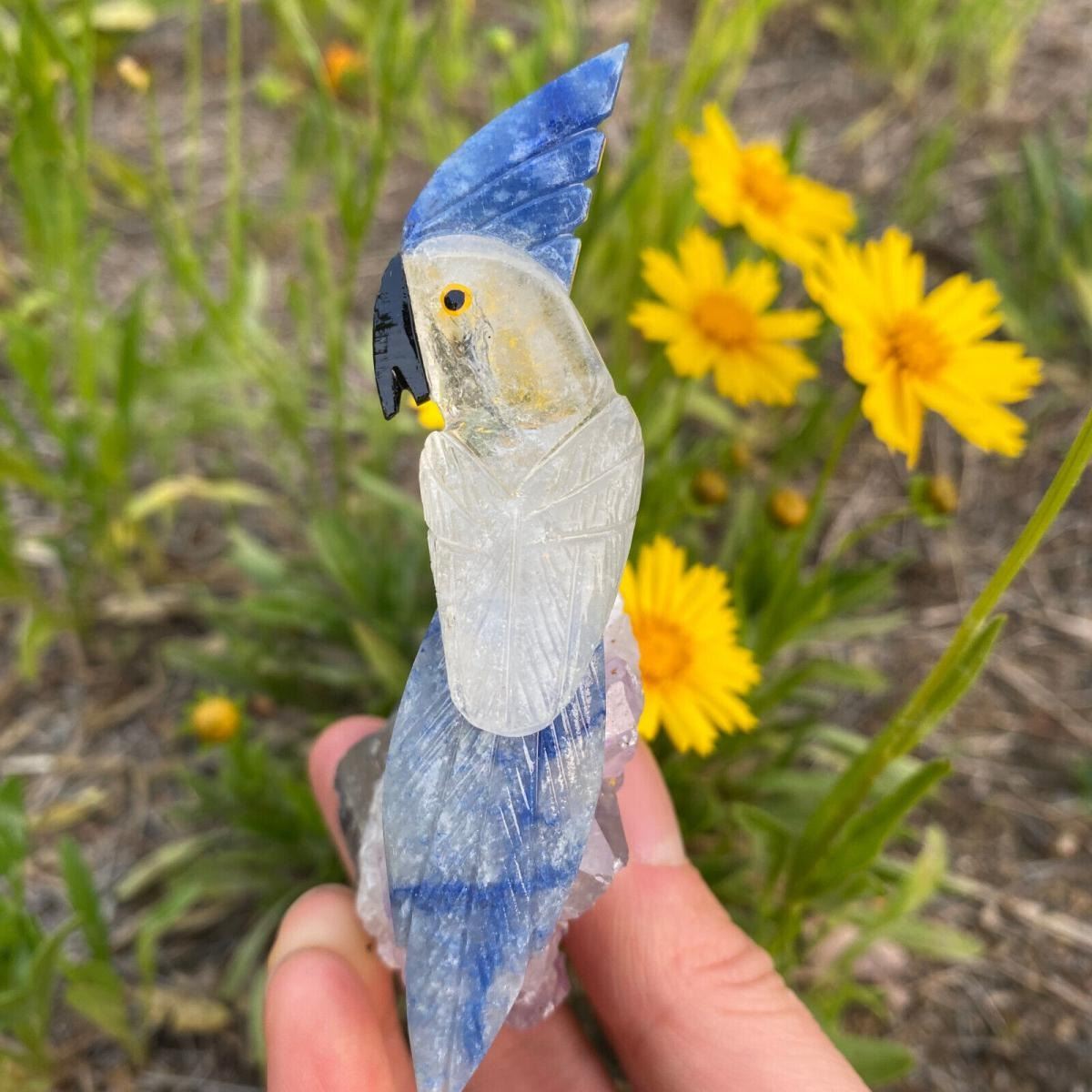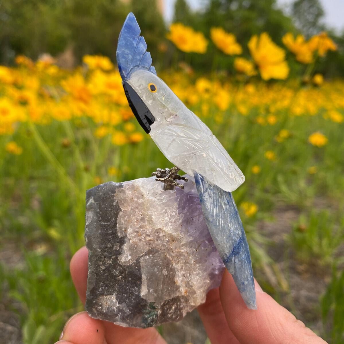 Natural Stone Handcarved Quartz Bird;Lenght: 64 mm;Bird with base Weight: 135 g;Material?Natural Quartz Crystal;