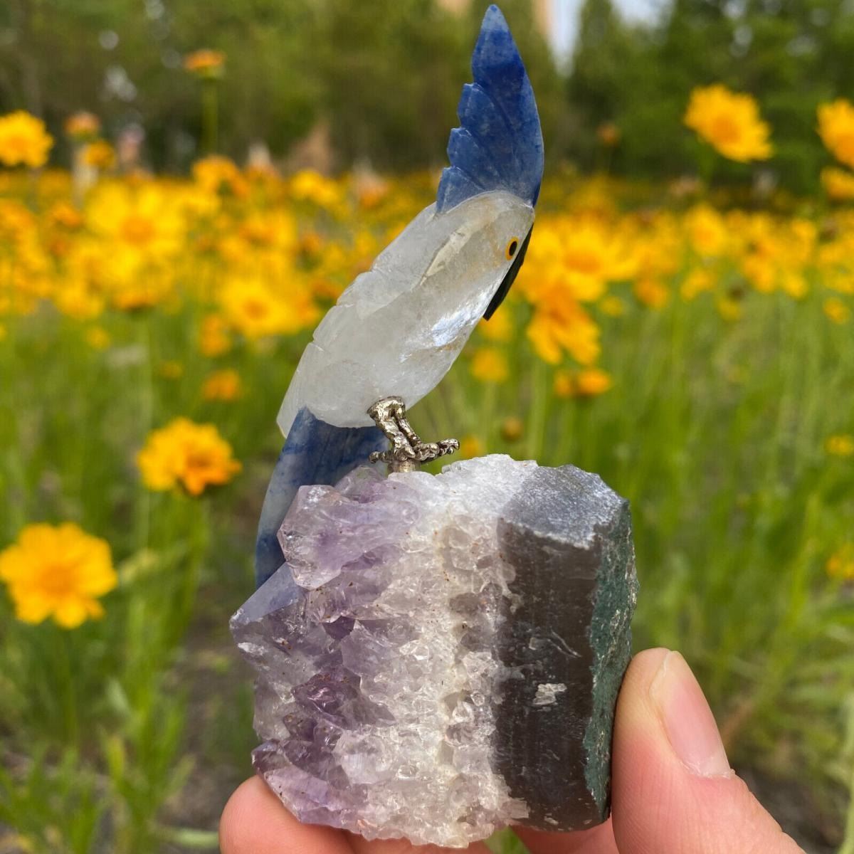 Natural Stone Handcarved Quartz Bird;Lenght: 64 mm;Bird with base Weight: 135 g;Material?Natural Quartz Crystal;