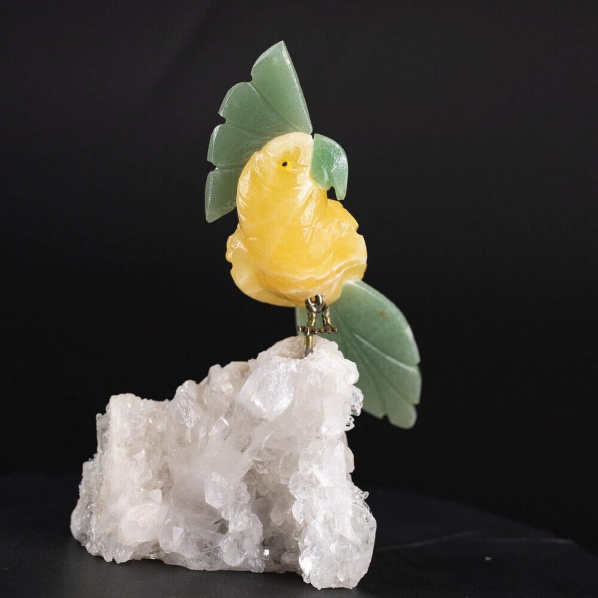 Natural Stone Handcarved Quartz Bird;Lenght: 119 MM;Bird with base Weight: 245 G