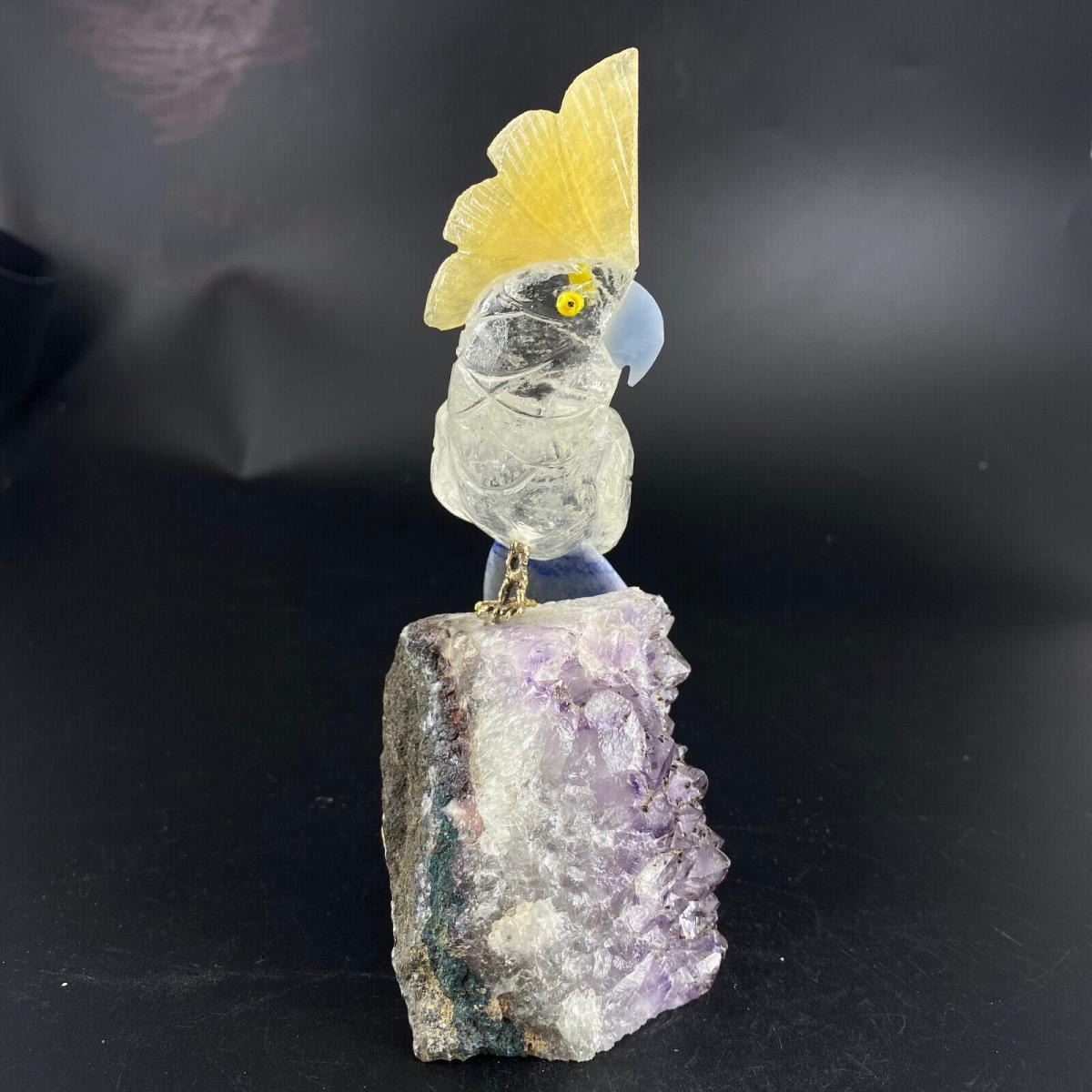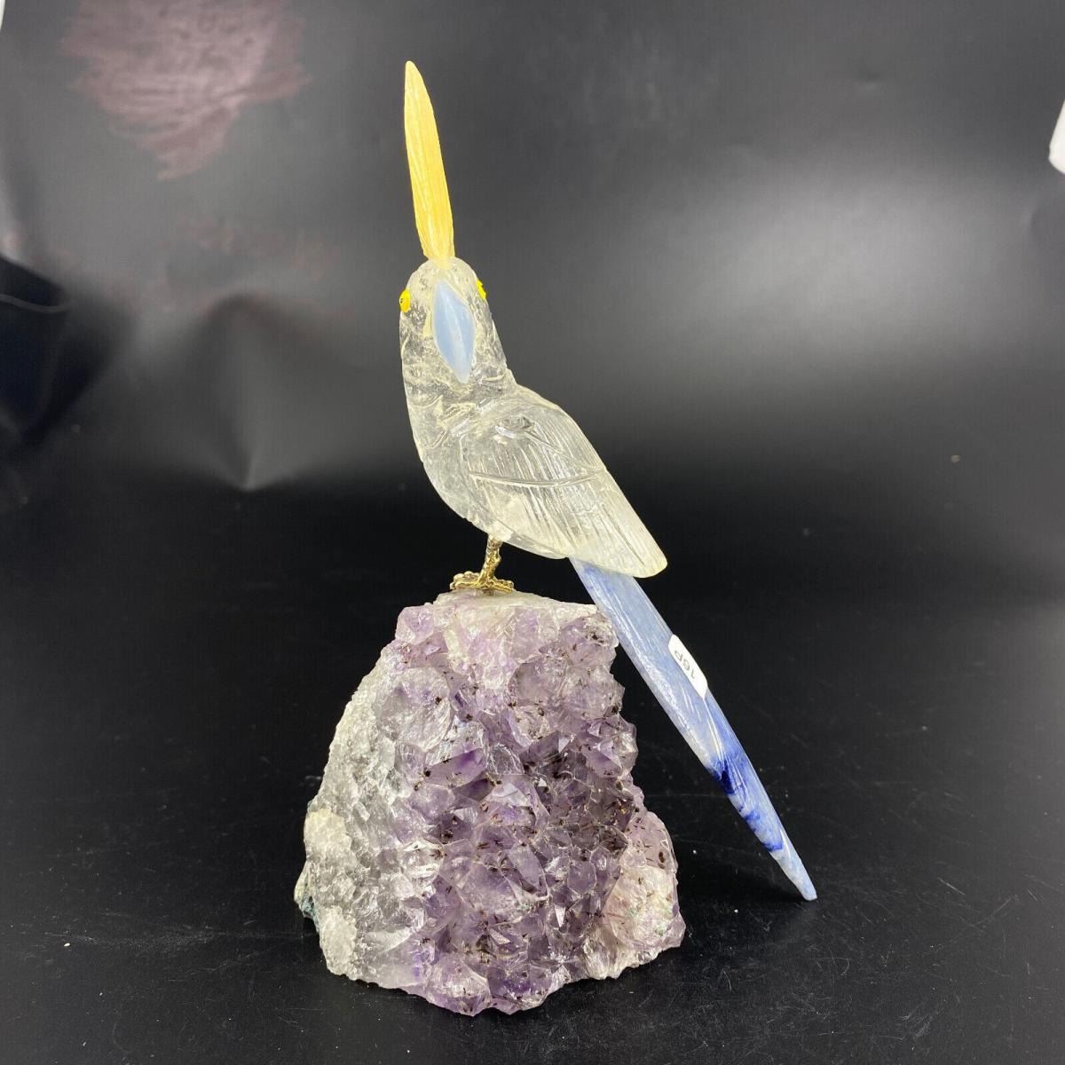 Natural Stone Handcarved Quartz Bird;bird Lenght: 192 mm;Bird with base Weight: 549 g;Material?Natural Quartz Crystal;