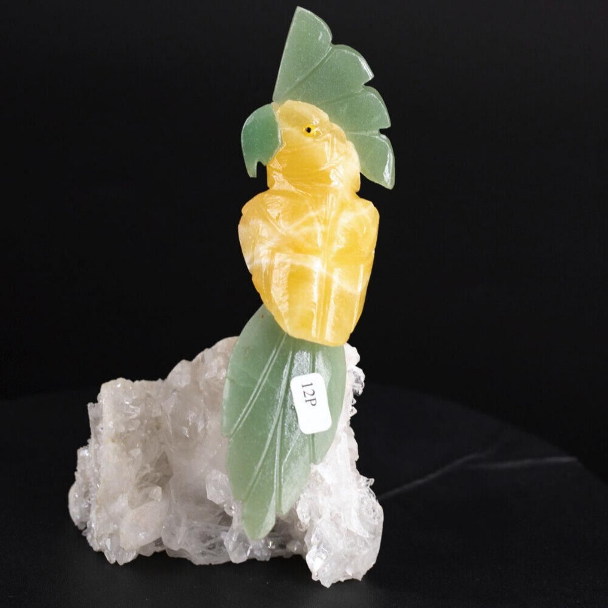 Natural Stone Handcarved Quartz Bird;Lenght: 119 MM;Bird with base Weight: 245 G