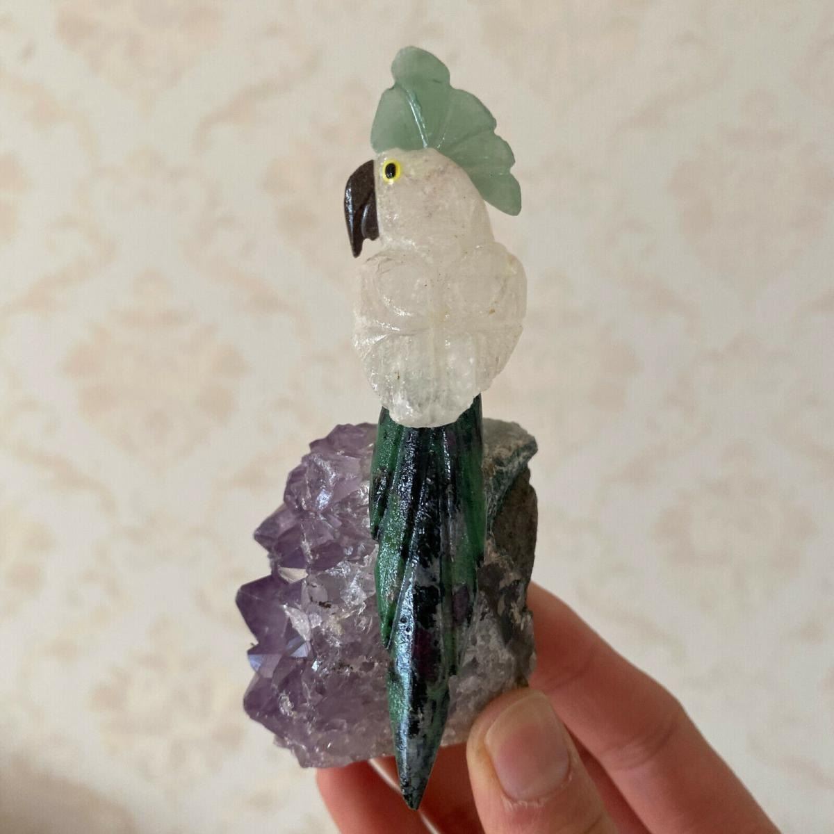 Natural Stone Handcarved Quartz Bird; Lenght: 108 mm ;Weight: 167 g?Bird with base?Material?NATURAL STONE & NATURAL QUARTZ