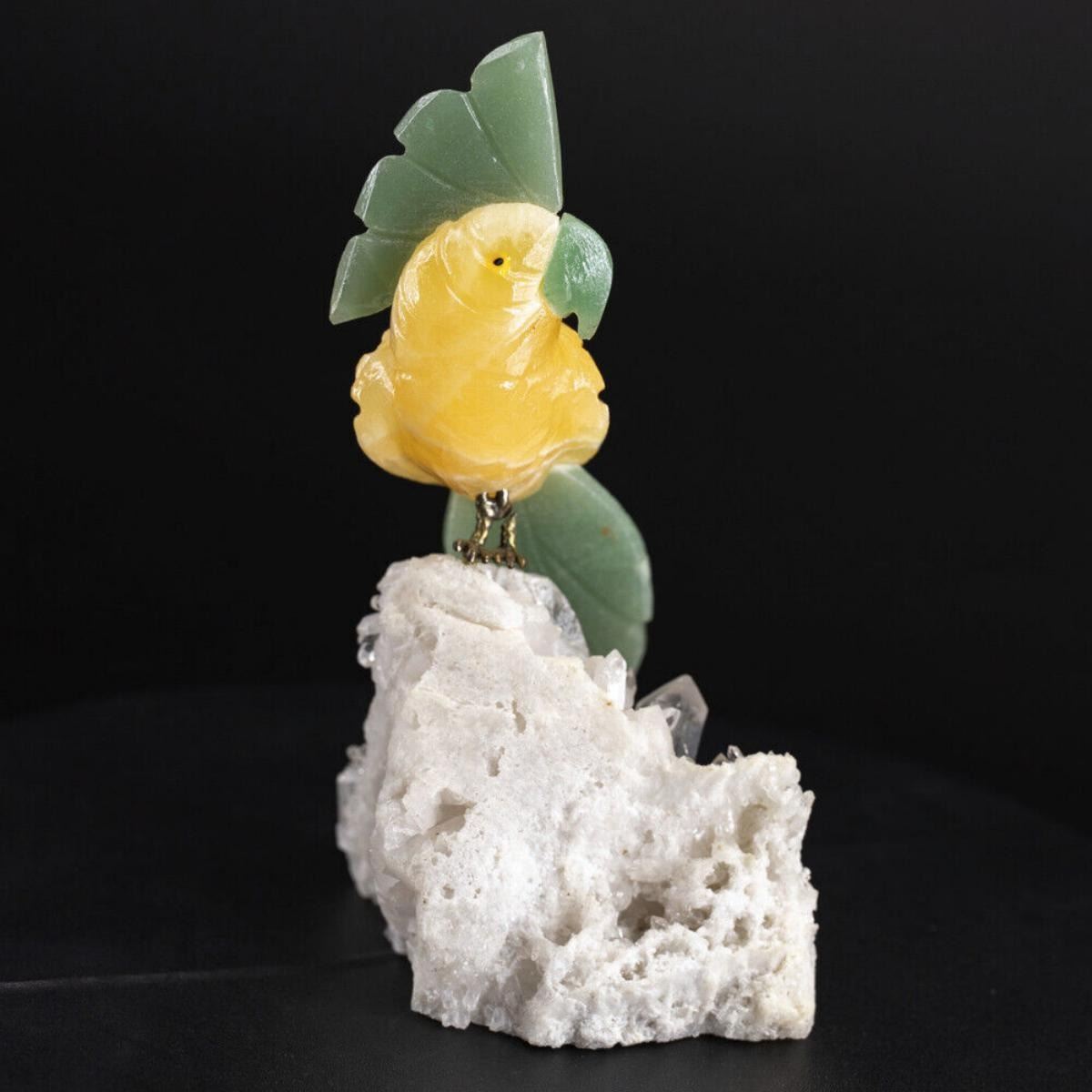 Natural Stone Handcarved Quartz Bird;Lenght: 119 MM;Bird with base Weight: 245 G