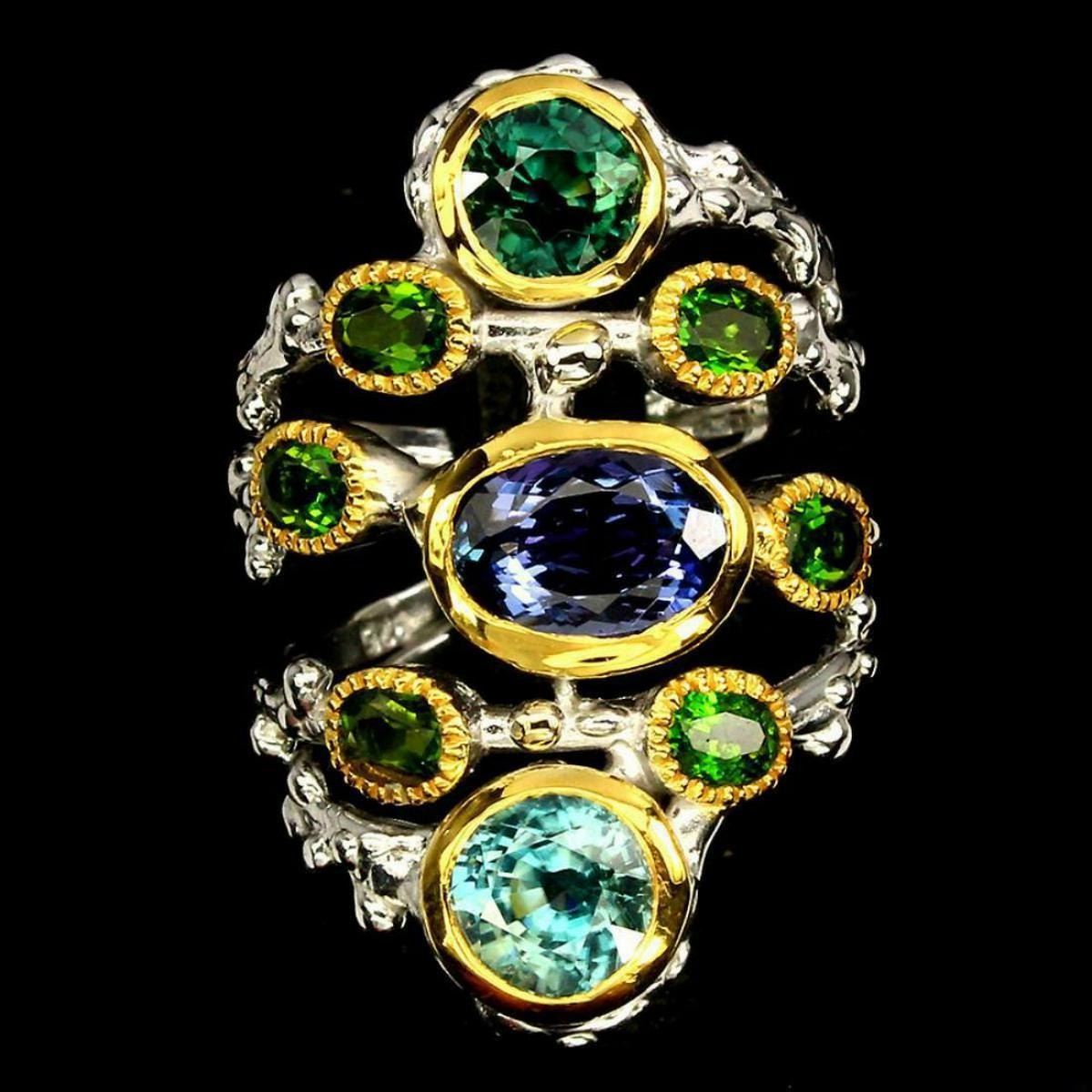 Natural Stunning Blue Tanzanite, Zircon & Diopside Ring