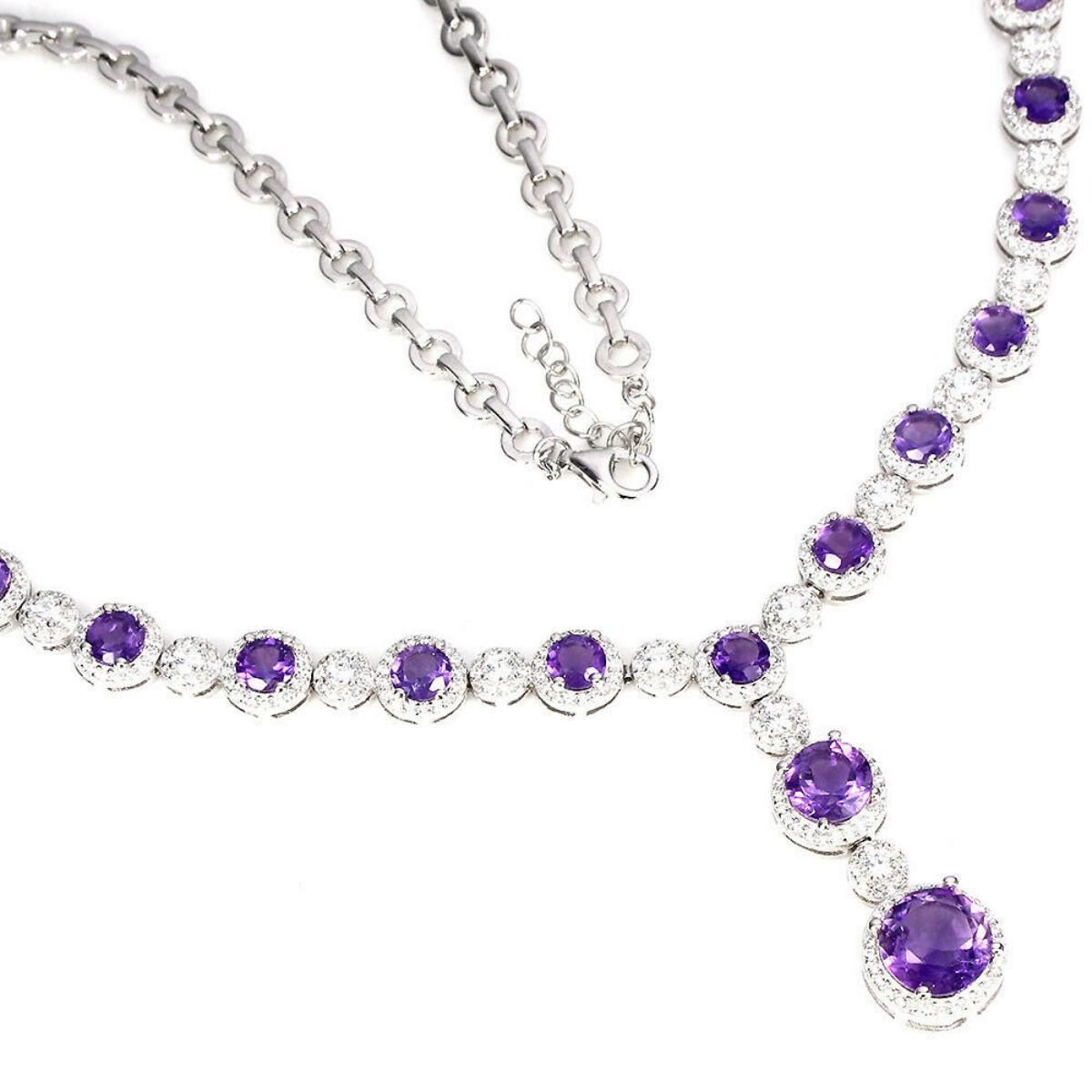 NECKLACE;TYPE OF METAL-925 STERLING SILVER;PLATE-14K WHITE GOLD;LENGTH -(INCHES)18.5;;MAIN STONE-AMETHYSTTOTAL WEIGHT-28.26 GRAM (TOTAL WEIGHT OF SILVER + STONE)DIMENSION-* STONE 5.0 TO 9.0 MM. * CZ 1.0 TO 2.5 MM. * STONES PART LENGTH -125.0 X 39.0 MM.;MAIN STONE SHAPE-ROUND CUT;MAIN STONE COLOR-TOP RICH PURPLE;CLARITY/GRADE-IF TO VVS;LUSTER-GORGEOUS;TREATMENT-UNHEATED;ORIGIN-BRAZIL;HARDNESS-7;