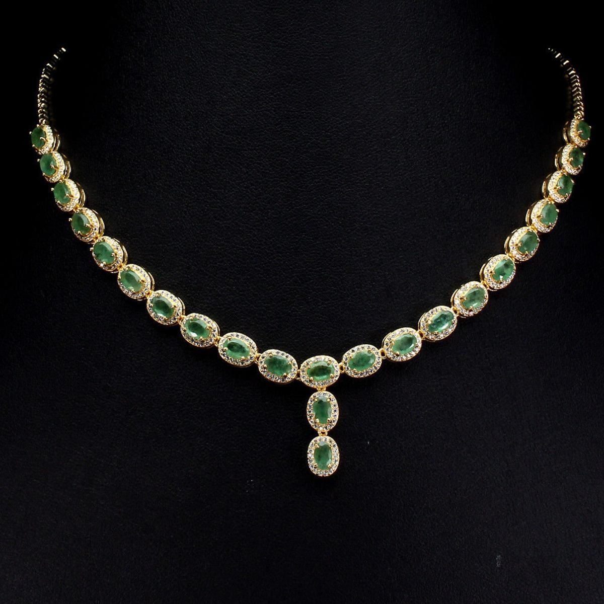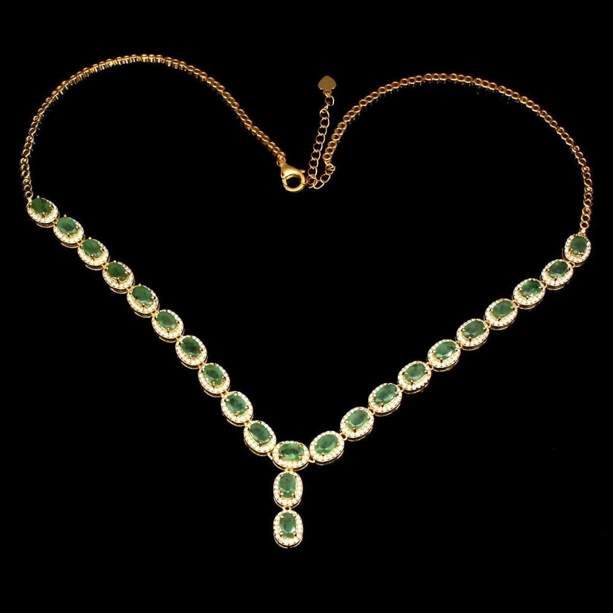 925 STERLING SILVER;14K YELLOW GOLD overlay;LENGTH (INCHES)18;MAIN STONEEMERALD;OTHER GEMSCUBIC ZIRCONIA;TOTAL WEIGHT124.73 CT (TOTAL WEIGHT OF SILVER + STONE)DIMENSION* STONE 6.0 X 4.0 MM. * CZ 1.0 MM. * STONES PART LENGTH 200.0 X 24.0 MM.;MAIN STONE SHAPEOVAL CUT;MAIN STONE COLORTOP RICH GREEN;CLARITY/GRADETRANSPARENT;LUSTEREXQUISITE;TREATMENTUNHEATED;ORIGINColumbia;HARDNESS7.5 - 8.0