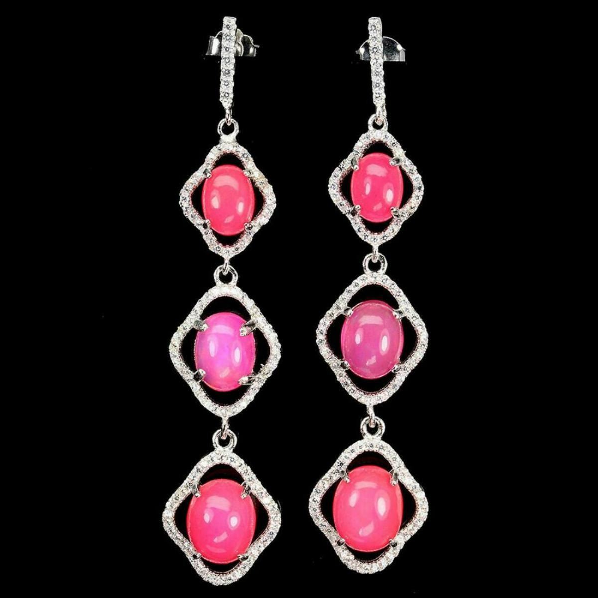 925 STERLING SILVER;PLATE-14K WHITE GOLD;MAIN STONE-PINK FIRE OPAL;TOTAL WEIGHT-9.98 GRAM (TOTAL WEIGHT OF SILVER + STONE)DIMENSION-* STONE 8.0 X 6.0 TO 10.0 X 8.0 MM. * CZ 1.0 MM. * FACE EARRINGS- 64.0 X 14.0 MM.;MAIN STONE SHAPE-OVAL CABOCHONMAIN STONE COLOR- PINK;ORIGIN-ETHIOPIA;HARDNESS-5.5 - 6.5;